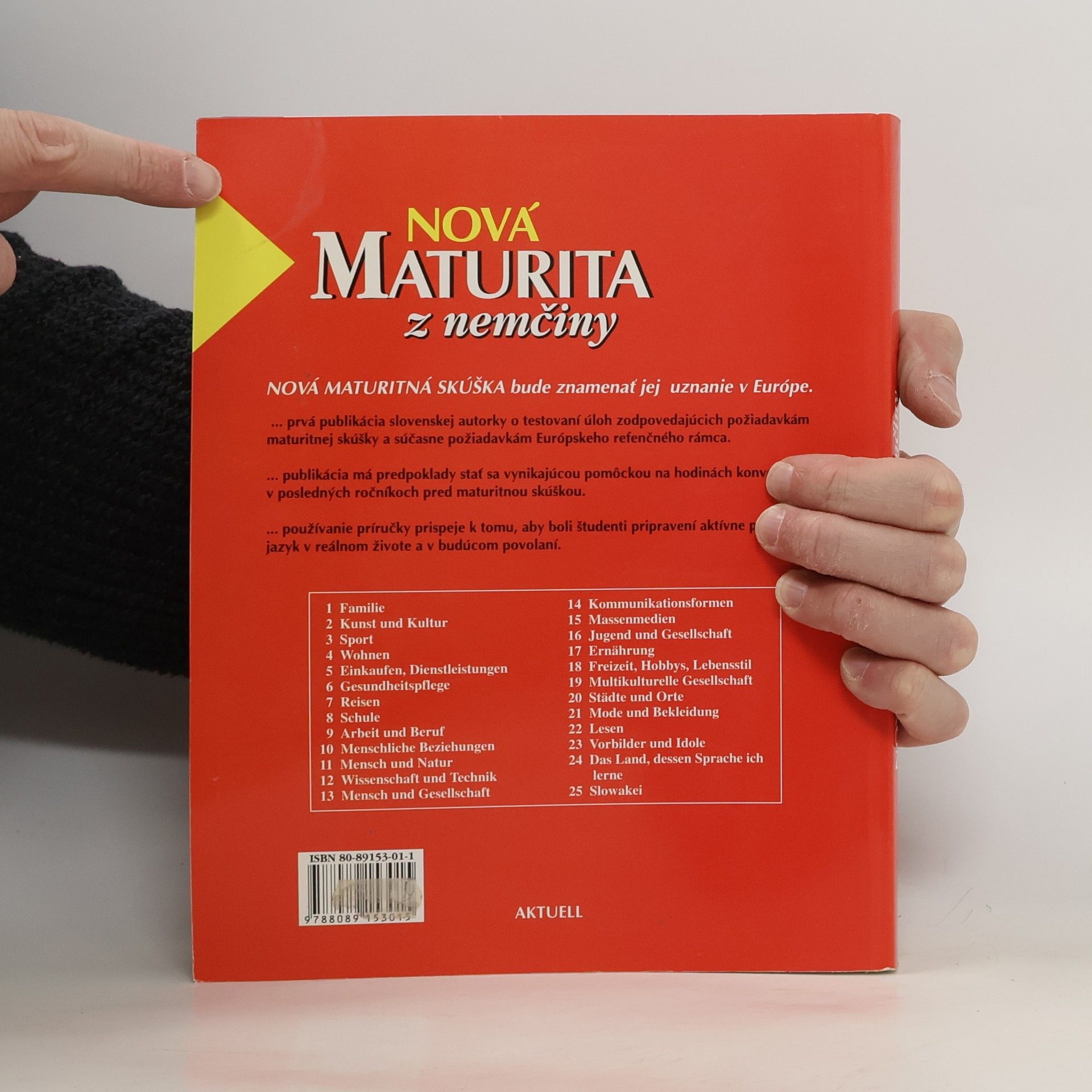 Nová maturitná skúška bude znamenať jej uznanie v Európe ... prvá publikácia slovenskej autorky o testovaní úloh zodpovedajúcich požiadavkám maturitnej skúšky a súčasne požiadavkám Európskeho referenčného rámca ... publikácia má predpoklady stať sa vynikajúcou pomôckou na hodinách konverzácie v posledných ročníkoch pred maturitnou skúškou ...používanie príručky prispeje k tomu, aby boli študenti pripravení aktívne používať jazyk v reálnom živote a v budúcom povolaní.
