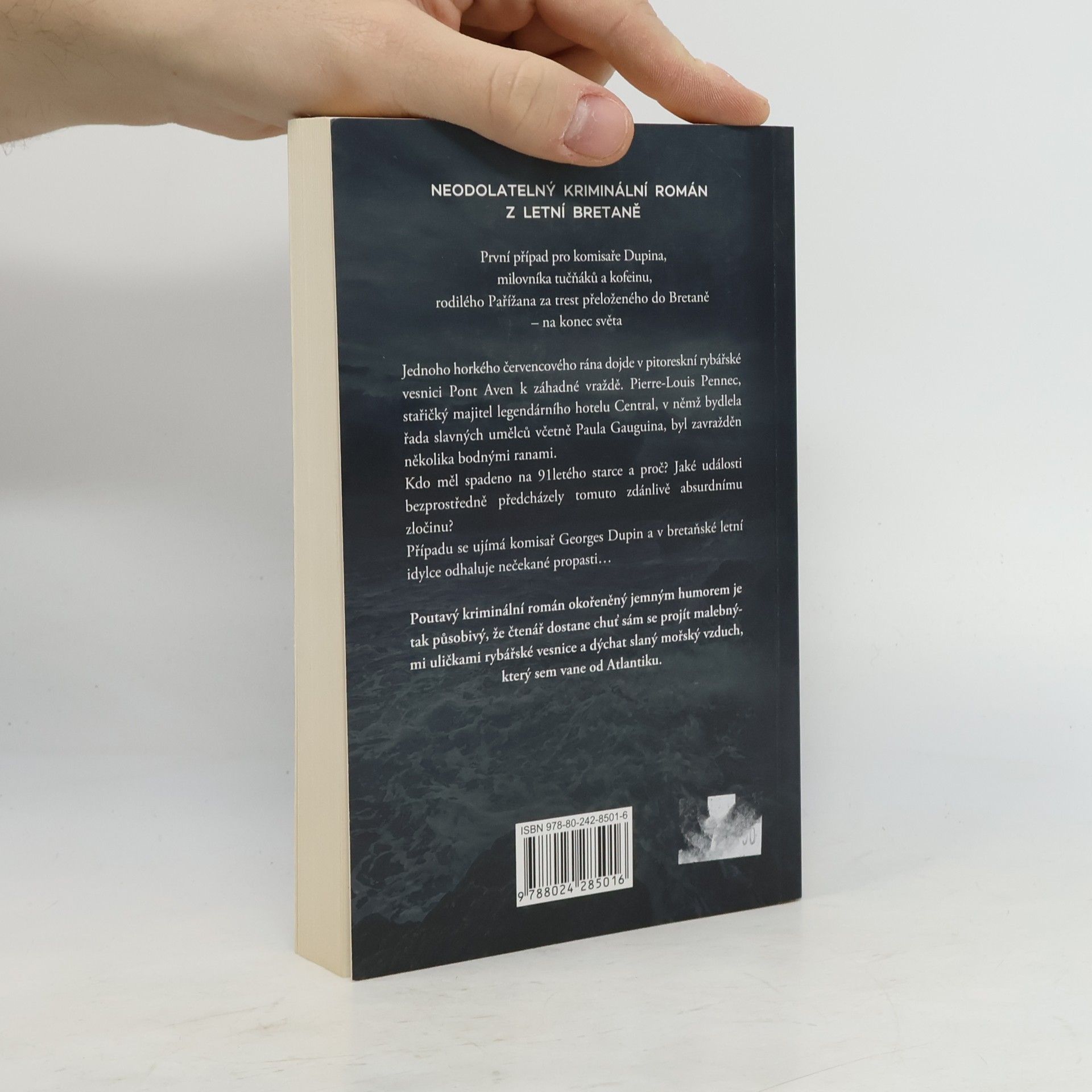 První případ pro komisaře Dupina, milovníka tučňáků a kofeinu, rodilého Pařížana za trest přeloženého do Bretaně – na konec světa. V malebné pobřežní vesničce je jednoho horkého červencového rána nalezen zavražděný stařičký majitel slavného hotelu. Komisař Georges Dupin se v bretaňské letní idylce záhy dostává na stopu podivuhodného tajemství..