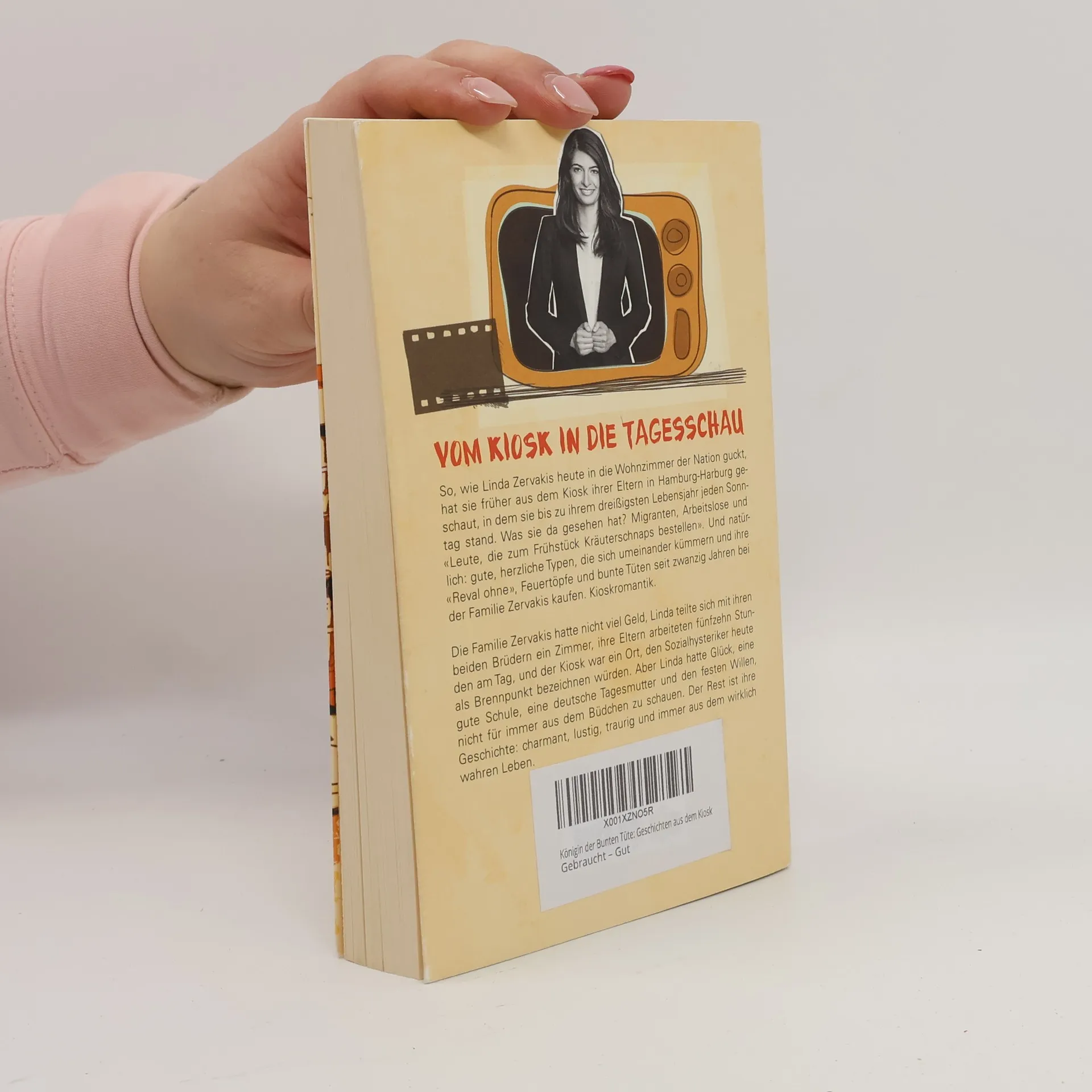 Vom Kiosk in die Tagesschau So, wie Linda Zervakis heute in die Wohnzimmer der Nation guckt, hat sie früher aus dem Kiosk ihrer Eltern in Hamburg-Harburg geschaut, in dem sie bis zu ihrem dreißigsten Lebensjahr jeden Sonntag stand. Was sie da gesehen hat? Migranten, Arbeitslose und «Leute, die zum Frühstück Kräuterschnaps bestellen». Und natürlich: gute, herzliche Typen, die sich umeinander kümmern und ihre Reval ohne, Feuertöpfe und bunte Tüten seit zwanzig Jahren bei der Familie Zervakis kaufen. Kioskromantik. Die Familie Zervakis hatte nicht viel Geld, Linda teilte sich mit ihren beiden Brüdern ein Zimmer, ihre Eltern arbeiteten fünfzehn Stunden am Tag, und der Kiosk war ein Ort, den Sozialhysteriker heute als Brennpunkt bezeichnen würden. Aber Linda hatte Glück, eine gute Schule, eine deutsche Tagesmutter und den festen Willen, nicht für immer aus dem Büdchen zu schauen. Der Rest ist ihre Geschichte: charmant, lustig, traurig und immer aus dem wirklich wahren Leben.