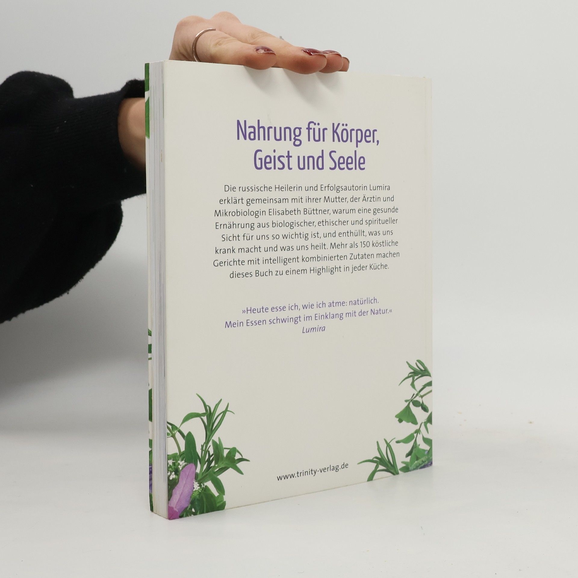 »Heute esse ich, wie ich atme natürlich. Mein Essen schwingt im Einklang mit der Natur.« Lumira Eine optimale Ernährung unterscheidet sich von Mensch zu Mensch. Daher liegt es in der Verantwortung jedes Einzelnen, achtsam auf den Körper zu hören und zurück zu der inneren Weisheit zu finden, die uns sagt, was wir essen sollen und was nicht. In ihrem neuen Buch erklärt Lumira gemeinsam mit der Ärztin und Mikrobiologin Elisabeth Büttner die Hintergründe einer gesunden Ernährung aus biologischer, ethischer und spiritueller Sicht. Auf faszinierende Weise nimmt sie den Leser mit auf eine Reise durch den eigenen Körper und enthüllt, was uns krank macht und was uns heilt. Denn nur, wer versteht, wie er auf die einzelnen Nahrungsbestandteile wirklich reagiert, kann frei für sich selbst bestimmen, was er essen soll, und der Stimme des eigenen Körpers wieder Vertrauen schenken. Köstliche Rezepte mit naturbelassenen und intelligent kombinierten Zutaten machen dieses Buch zu einem unverzichtbaren Highlight in jeder Küche.