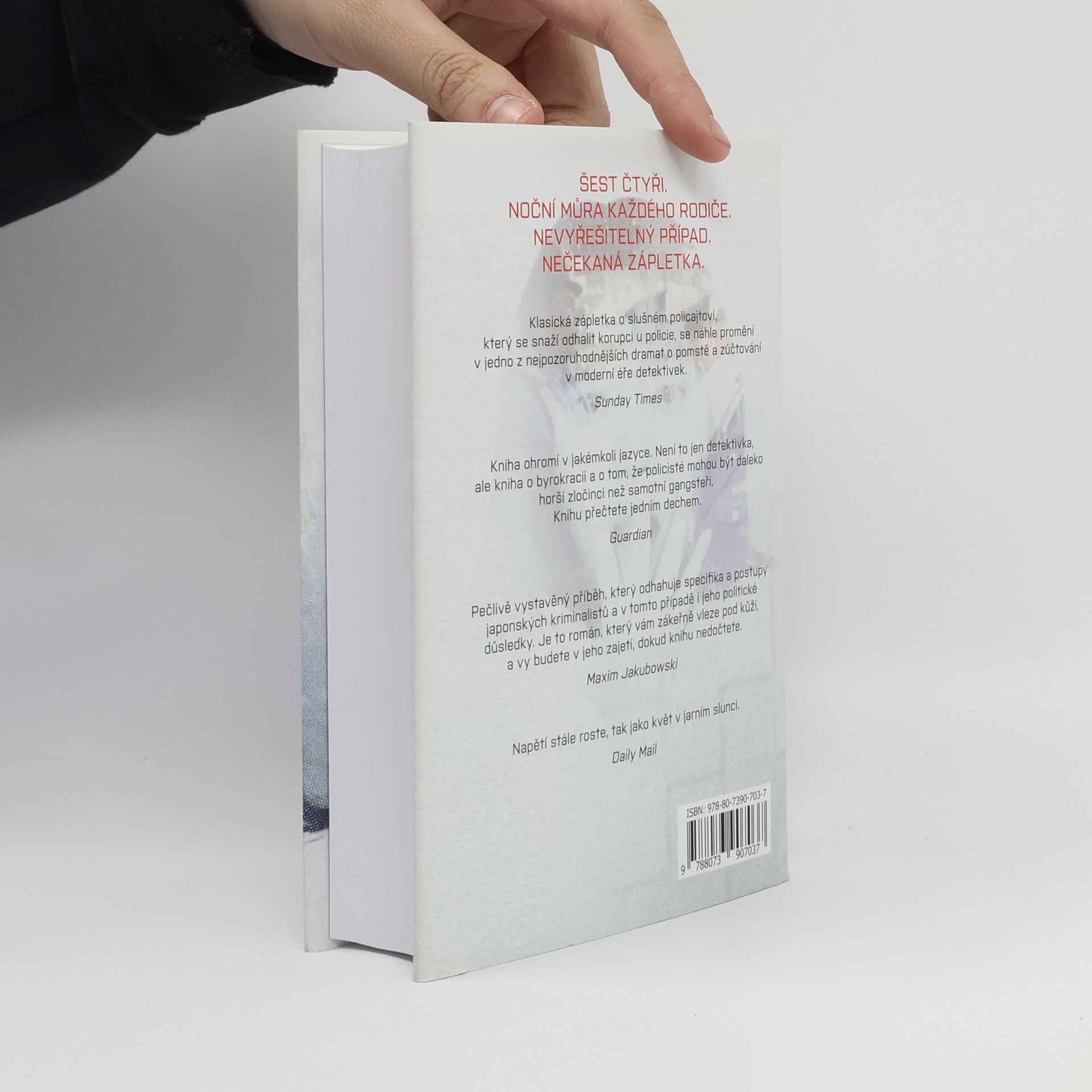 Zapomenutý případ, který otřásl japonskou policií Noční můra každého rodiče. Případ, který nevyřešil žádný detektiv. Zvraty, které čtenář neočekává. Pět dní během ledna 1989 poslouchali rodiče sedmileté tokijské školačky požadavky jejího únosce. Nikdy nezjistí jeho totožnost. Nikdy už svou dceru neuvidí. Dalších čtrnáct let japonská veřejnost poslouchá omluvy policejních složek. Na tohle zpackané vyšetřování nejde zapomenout. Říká se mu „Šest čtyřek“. Lidé jim nikdy neodpustili. Ale na konci roku 2002 se během pár dní všechno změní. Tiskový mluvčí policejního oddělení náhodou najde ve starých záznamech cosi, co zaseje semínko pochybnosti. Vůbec netuší, co odhalil. Kdyby věděl, co najde, nikdy by se do těch starých složek nedíval...