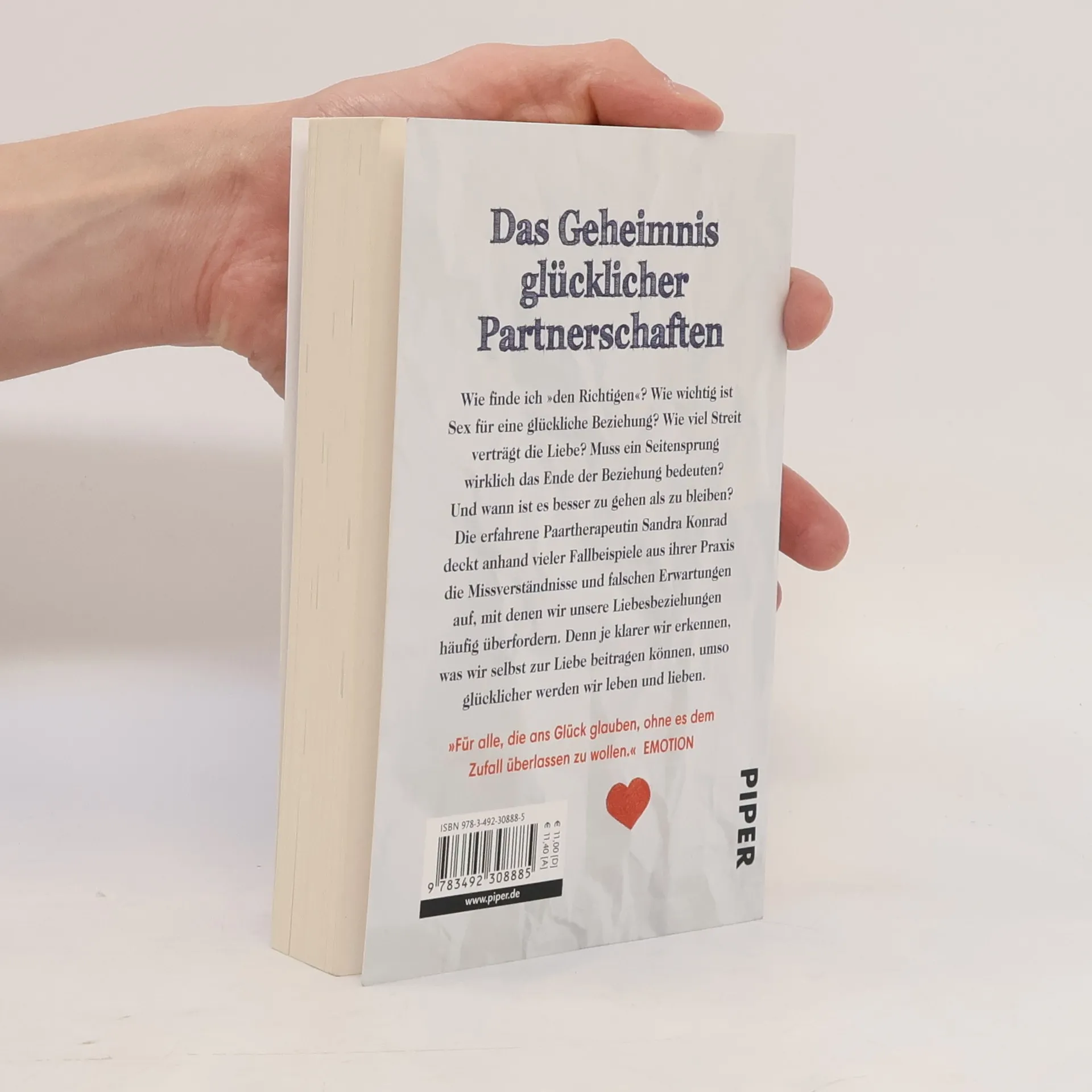Wie finde ich »den Richtigen«? Wie wichtig ist Sex für eine glückliche Beziehung? Wie viel Streit verträgt die Liebe? Muss ein Seitensprung wirklich das Ende der Beziehung bedeuten? Und wann ist es besser zu gehen als zu bleiben? Die erfahrene Paartherapeutin Sandra Konrad deckt anhand vieler Fallbeispiele aus ihrer Praxis die Missverständnisse und falschen Erwartungen auf, mit denen wir unsere Liebesbeziehungen häufig überfordern. Denn je klarer wir erkennen, was wir selbst zur Liebe beitragen können, umso glücklicher werden wir leben und lieben.