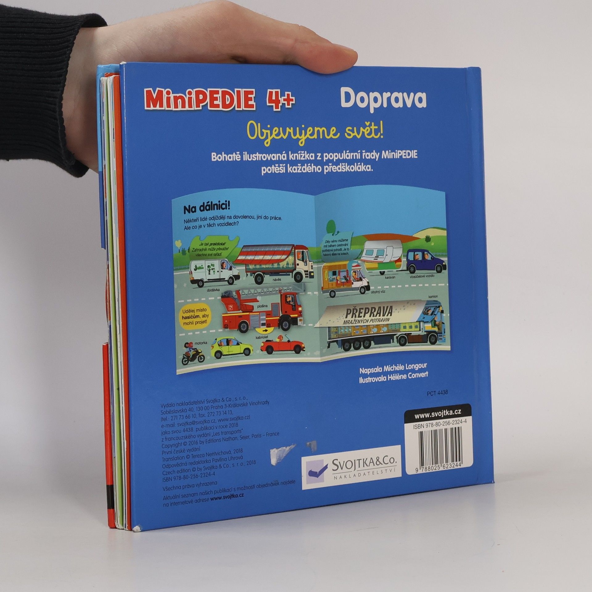 Proč mají auta motor? Co převáží nákladní loď? Kde se otáčí metro? A jakou rychlostí jede rychlík? Zjisti, jak to vypadá na křižovatce, kdo má přednost a kdo nedodržel silniční předpisy. Kniha pro děti od čtyř let je plná odklápěcích okének a pohyblivých prvků, díky nimž si dítě procvičí i jemnou motoriku. Knížka s prvky Montessori. České vydání publikace nakladatelství Nathan.