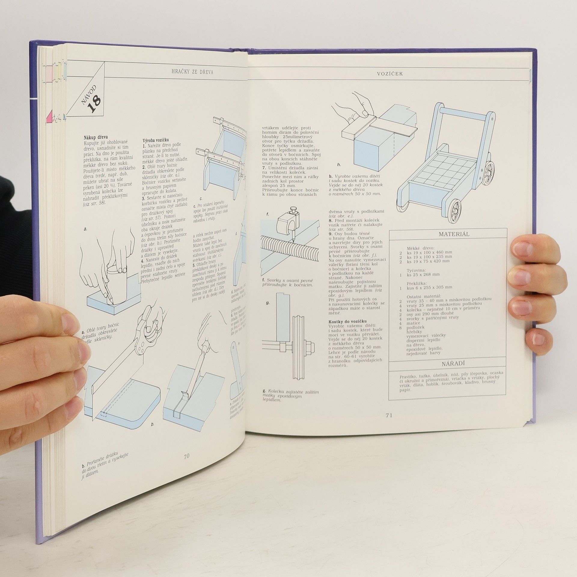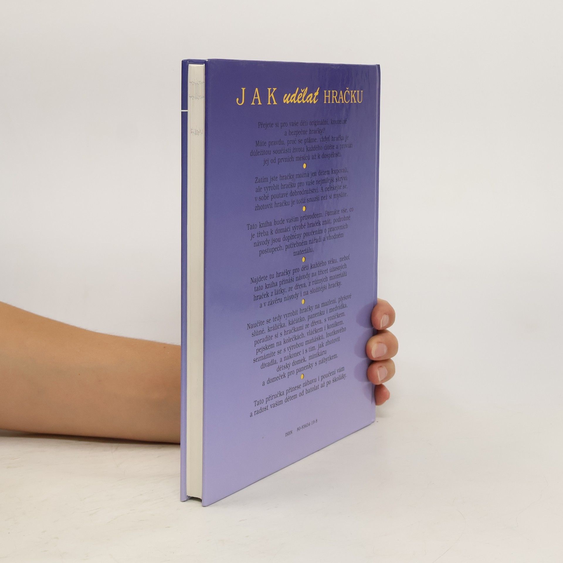 Kniha obsahuje 32 návodů na výrobu jednoduchých i složitějších hraček ze dřeva, textilu i jiných materiálů. Součástí výrobních postupů jsou podrobné nákresy a návody, spousta barevných i černobílých fotografií.