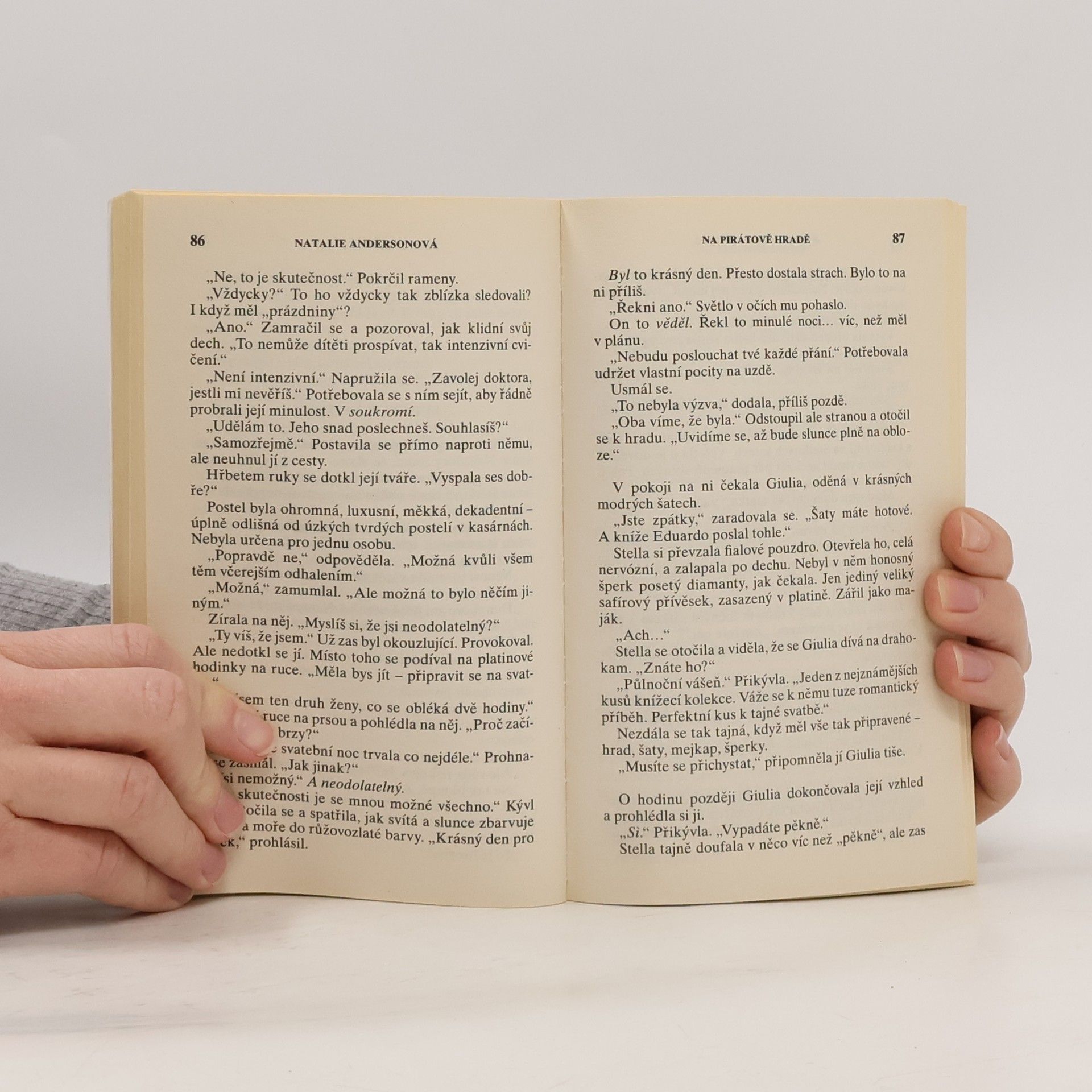 Na pirátově hradě (Trůn San Felipe) Byli si tak podobní - Stella, dcera generála, vojačka, pro niž je povinnost na prvním místě, a Eduardo, bratr korunního knížete. Oba se cítili zrozeni pro službu a nedokázali si představit život bez ní… Ale pak se dráhy jejich životů protnuly. A rázem bylo všechno jinak! Vládcova milenka Zafir nemůže být mrtvý, prostě nemůže! Ale Lauren by asi uvěřila spíše tomu, že milenec, kterého se vypravila hledat do jeho vlasti kdesi na Blízkém východě, je mrtvý, že zahynul v občanské válce, než že od ní prostě odešel… aniž by jí řekl, že se má stát vládcem tohoto království! Zafir měl dobrý důvod, proč Lauren opustil. Aspoň si to myslel. Jenže teď má pocit, že se mýlil úplně ve všem!