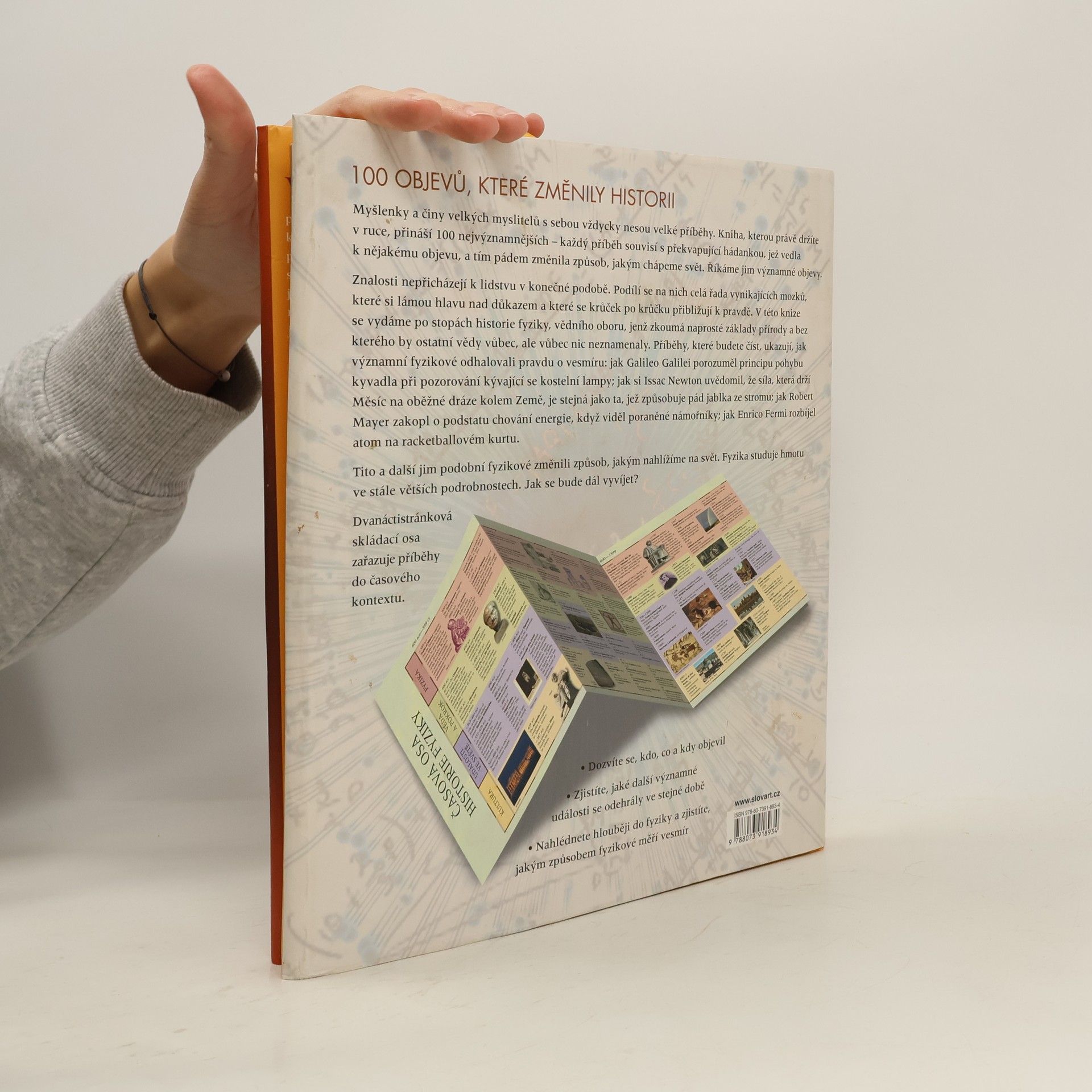 V této knize se vydáme po stopách historie fyziky, vědního oboru, jenž zkoumá naprosté základy přírody a bez kterého by ostatní vědy vůbec, ale vůbec nic neznamenaly. Příběhy, které budete číst, ukazují, jak významní fyzikové odhalovali pravdu o vesmíru: jak Galileo Galilei odhalil principy pohybu kyvadla při pozorování kývající se kostelní lampy; jak si Issac Newton uvědomil, že síla, která drží Měsíc na oběžné dráze kolem Země, je stejná jako ta, jež způsobuje pád jablka ze stromu; jak Julius Mayer zakopl o podstatu chování energie, když zašíval poranění námořníka; jak Richard Feynman vyřešil chování subatomových částic, zatímco pozoroval studenta, jak točí talířem. Tito a další jim podobní fyzikové změnili způsob, jakým nahlížíme na svět. Fyzika studuje hmotu ve stále větších podrobnostech. Jak se bude dál vyvíjet? Kniha obsahuje i rozkládací časovou osu, která zařazuje příběhy do dějinného kontextu.