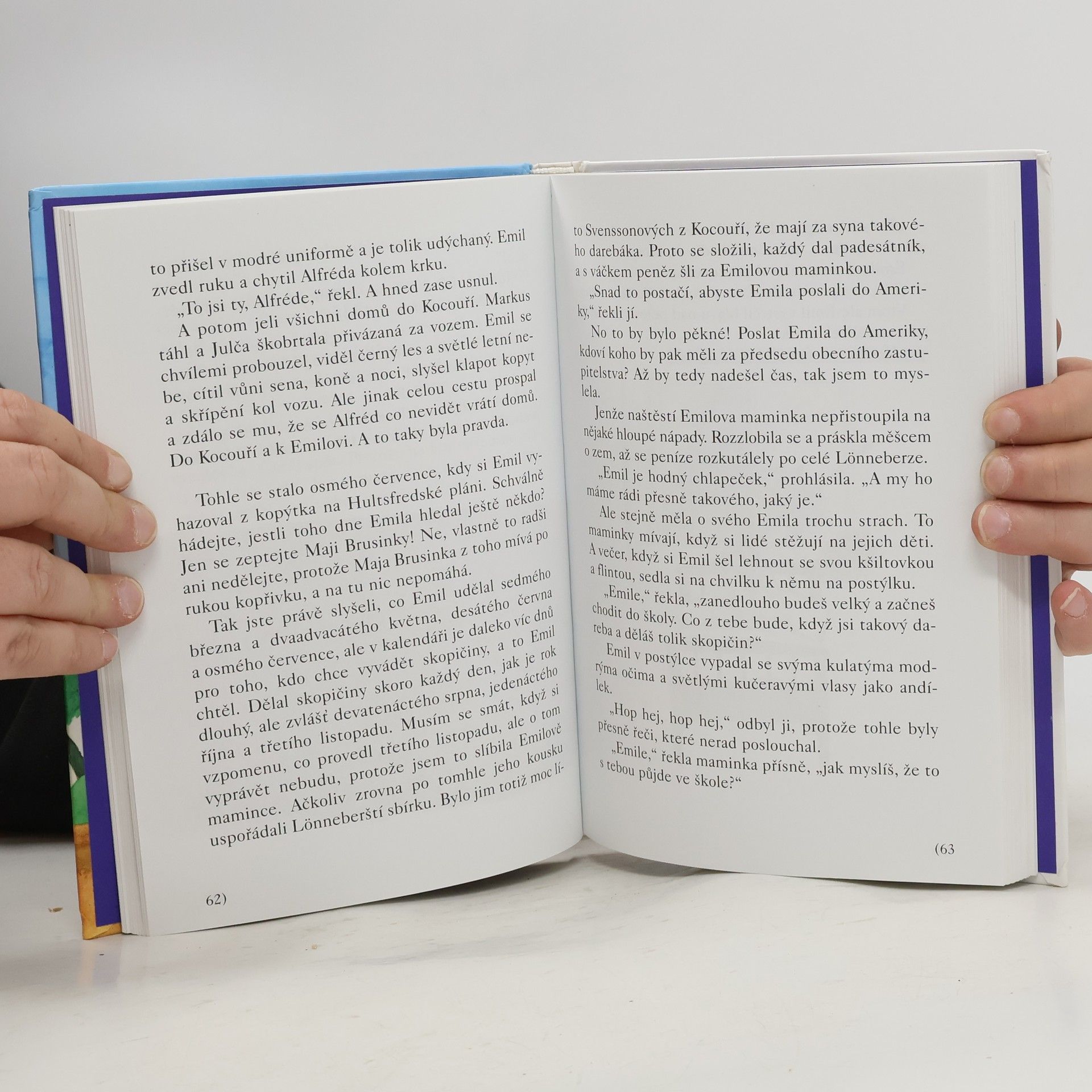 Emil je kluk jako buk, je mu pět let a je to pěkný divoch a paličák. Vypadá sice roztomile - modré oči, buclaté červené tvářičky, světlé kučeravé vlasy - úplný andílek! Ale ve švédské vesničce Lönneberze není jediného človíčka, který by neznal rošťáka Emila a který by se neobával jaho vykutálených kousků. A všichni také dobře vědí, že počet dřevěných panáčků vyrovnaných na poličce v truhlárně Emilova tatínka už přesáhl stovku. Když totiž Emílek něco provede, sedí za trest v truhlárně, přemýšlí údajně o svých prohřešcích a přitom zručně vyřezává legrační panáčky. Skutečně ovšem přemýšlí o nových skopičinách. Všech sto se jich do této knížky opravdu nevešlo, ale ty nejpodařenější v ní zaručeně jsou! Dotisk v r. 2008 ISBN 978-80-00-01222-3 (dotisk)... celý text