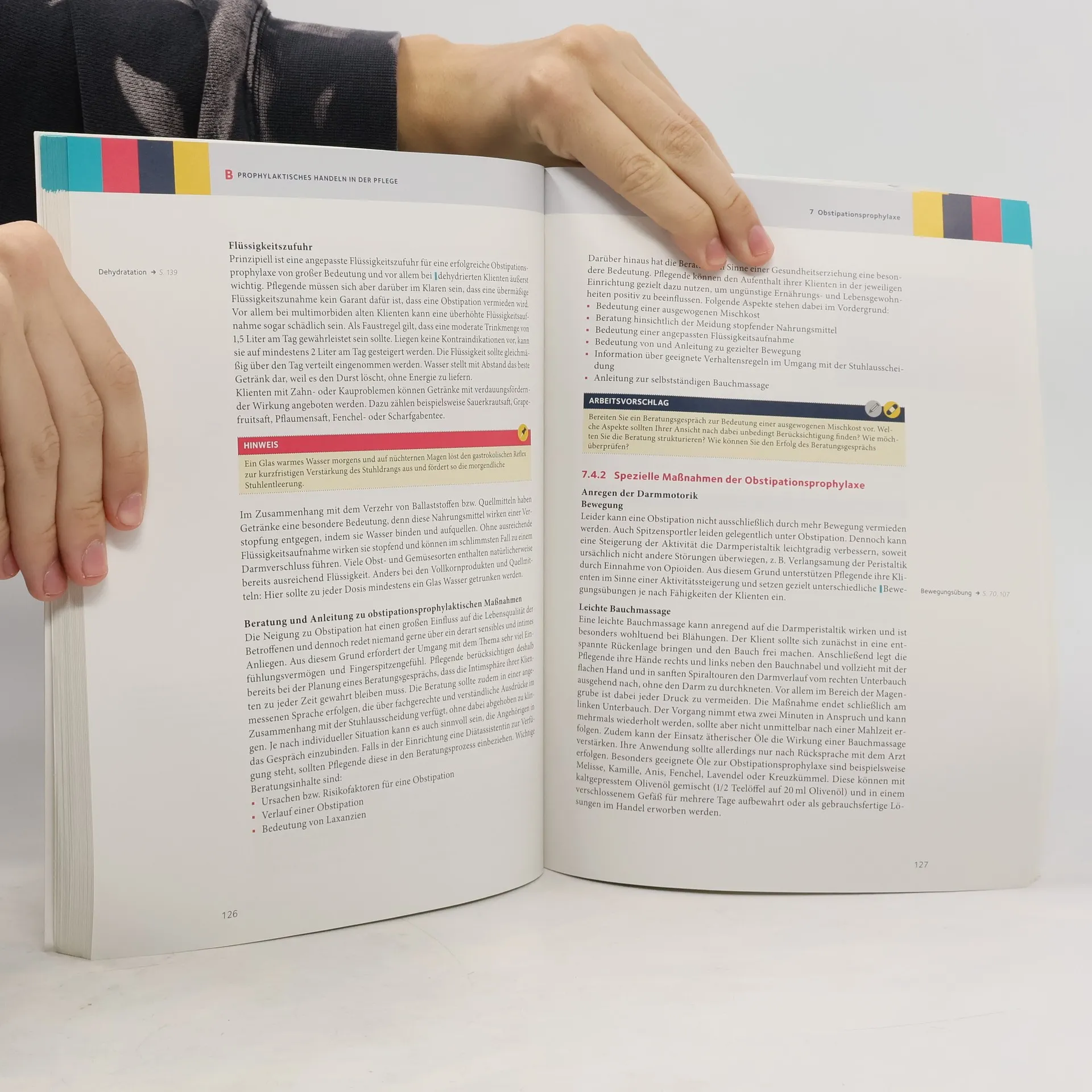 Gesundheitsförderung und Prävention gehören zu den wichtigsten Aufgaben beruflich Pflegender. Dabei spielen die Prophylaxen eine besondere Rolle. Nach einer Einführung in die Grundlagen werden folgende Prophylaxen thematisiert: Pneumonie-, Dekubitus-, Thrombose-, Kontraktur-, Soor- und Parotitis-, Sturz-, Obstipations-, Intertrigo-, Dehydratations-, Habituations- und Reizdeprivations-, Malnutrations- sowie Infektionsprophylaxe.