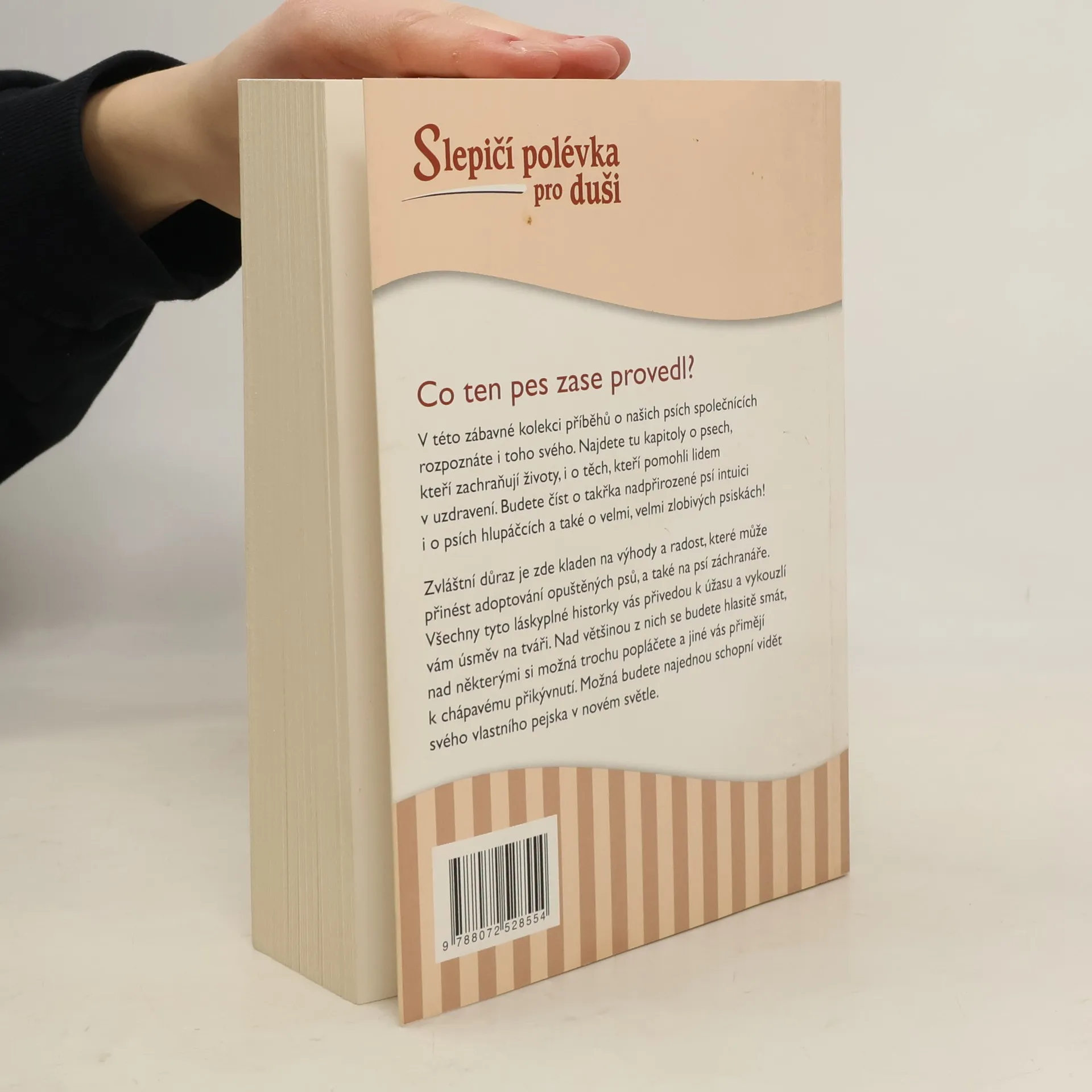 Co to ten pes zase provedl? V této zábavné kolekci příběhů o našich psích společnících rozpoznáte i toho svého. Najdete tu kapitoly o psech, kteří zachraňují životy, i o těch, kteří pomohli lidem v uzdravení. Budete číst o takřka nadpřirozené psí intuici i o psích hlupáčcích a také o velmi, velmi zlobivých psiskách! Zvláštní důraz je zde kladen na výhody a radost, které může přinést adoptování opuštěných psů, a také na psí záchranáře. Všechny tyto láskyplné historky vás přivedou k úžasu a vykouzlí vám úsměv na tváři. Nad většinou z nich se budete hlasitě smát, nad některými si možná trochu popláčete a jiné vás přimějí k chápavému přikývnutí. Možná budete najednou schopní vidět svého vlastního pejska v novém světle.