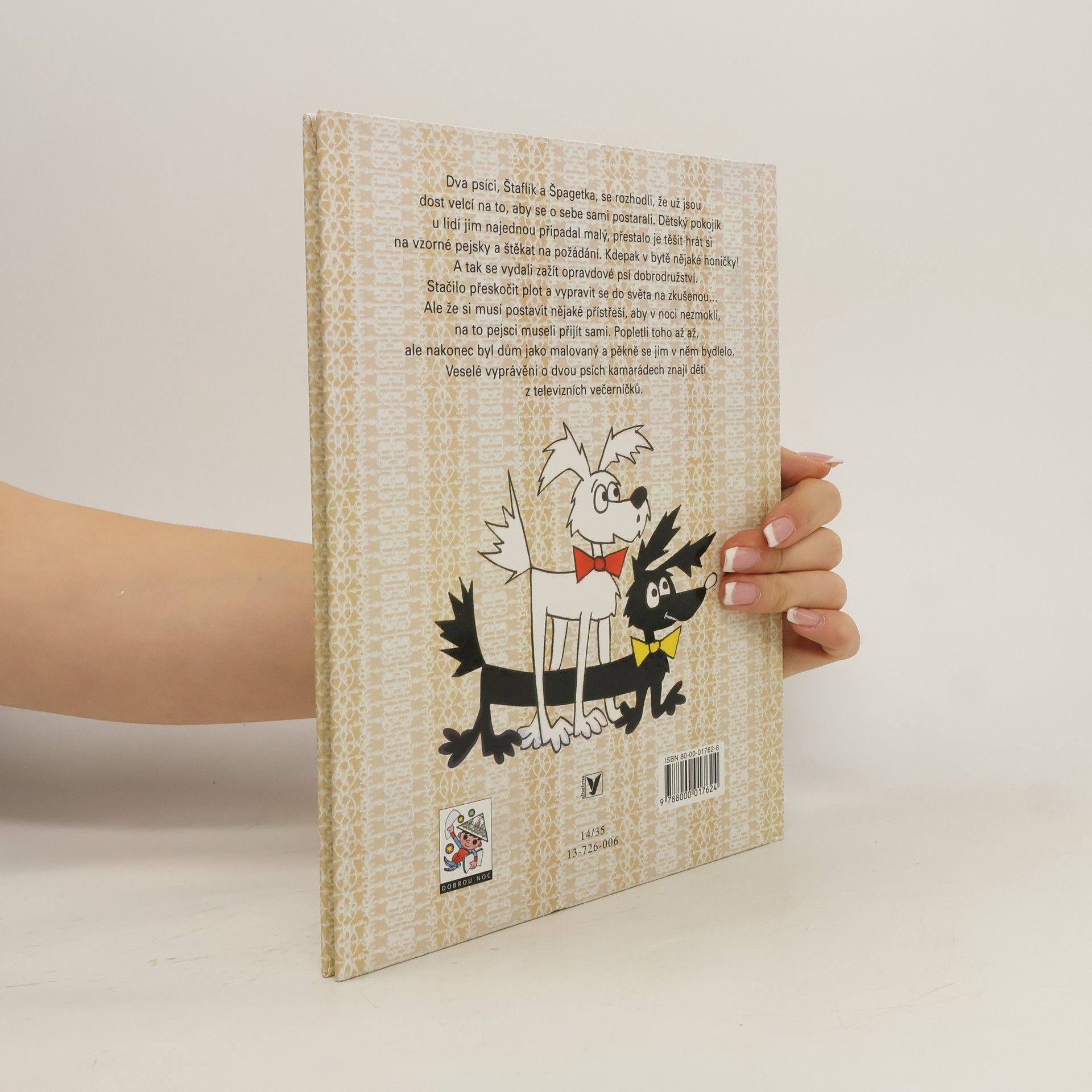 Veselé vyprávění o dvou psích kamarádech známé z televizních večerníčků, jemuž nezapomenutelnou podobu vtiskl výtvarník Zdeněk Smetana. Dva psíci Štaflík a Špagetka se rozhodli, že už jsou dost velcí na to, aby se o sebe postarali sami, a tak se vydali za opravdovým psím dobrodružstvím. Stačí přeskočit plot a vypravit se do světa na zkušenou… Bohatě ilustrovaný text je určen k hlasitému předčítání, ale poradí si s ním i začínající čtenáři. Kniha patří k nejúspěšnějším titulů edice Ahoj děti, dobrou noc. 3. vydání. ... celý text