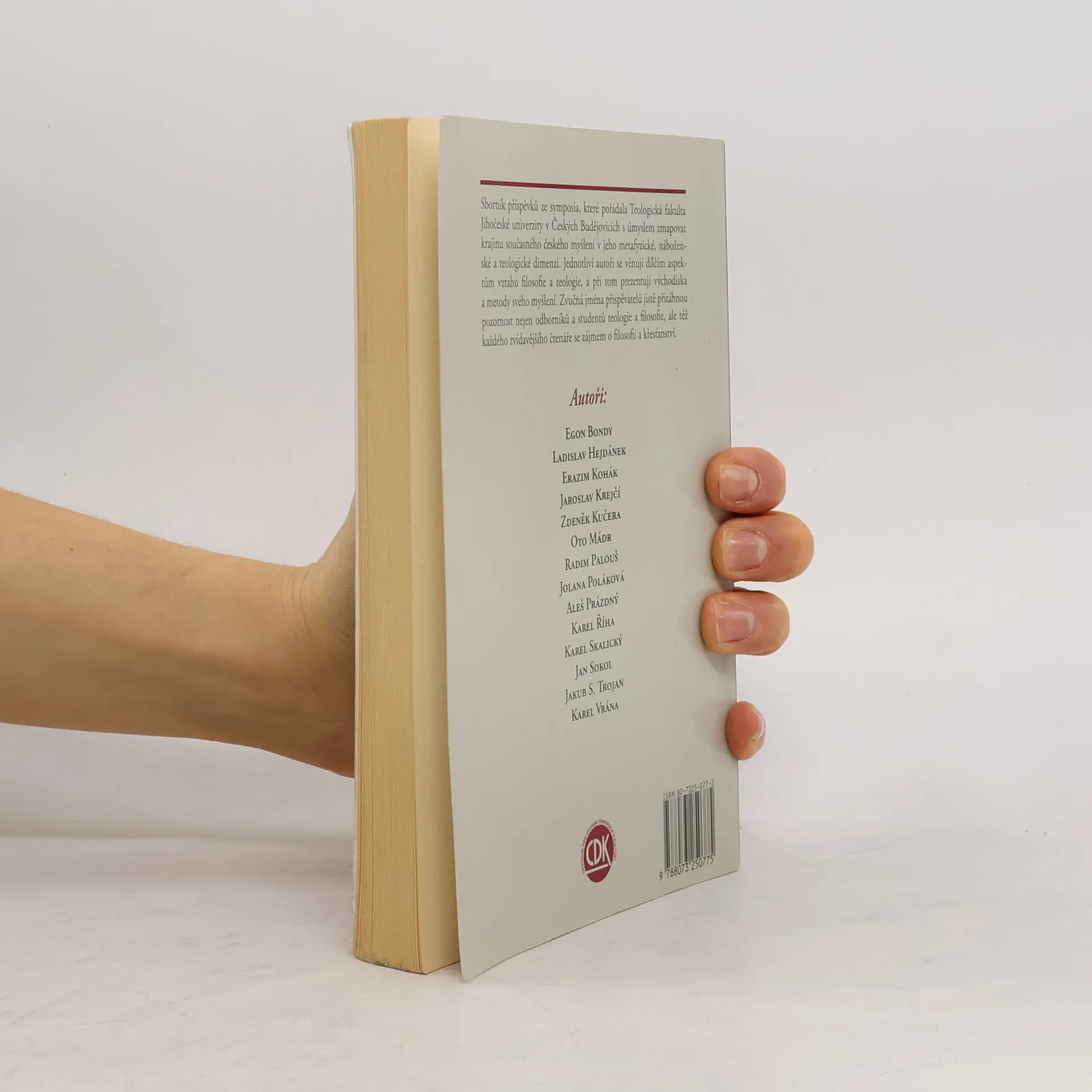 Sborník příspěvků ze symposia, které pořádala Teologická fakulta Jihočeské univerzity v Českých Budějovicích s úmyslem zmapovat krajinu současného českého myšlení v jeho metafyzické, náboženské a teologické dimenzi. Jednotliví autoři se věnují dílčím aspektům vztahu filosofie a teologie, a při tom prezentují východiska a metody svého myšlení. Zvučná jména přispěvatelů jistě přitáhnou pozornost nejen odborníků a studentů teologie a filosofie, ale též každého zvídavějšího čtenáře se zájmem o filosofii a křesťanství.