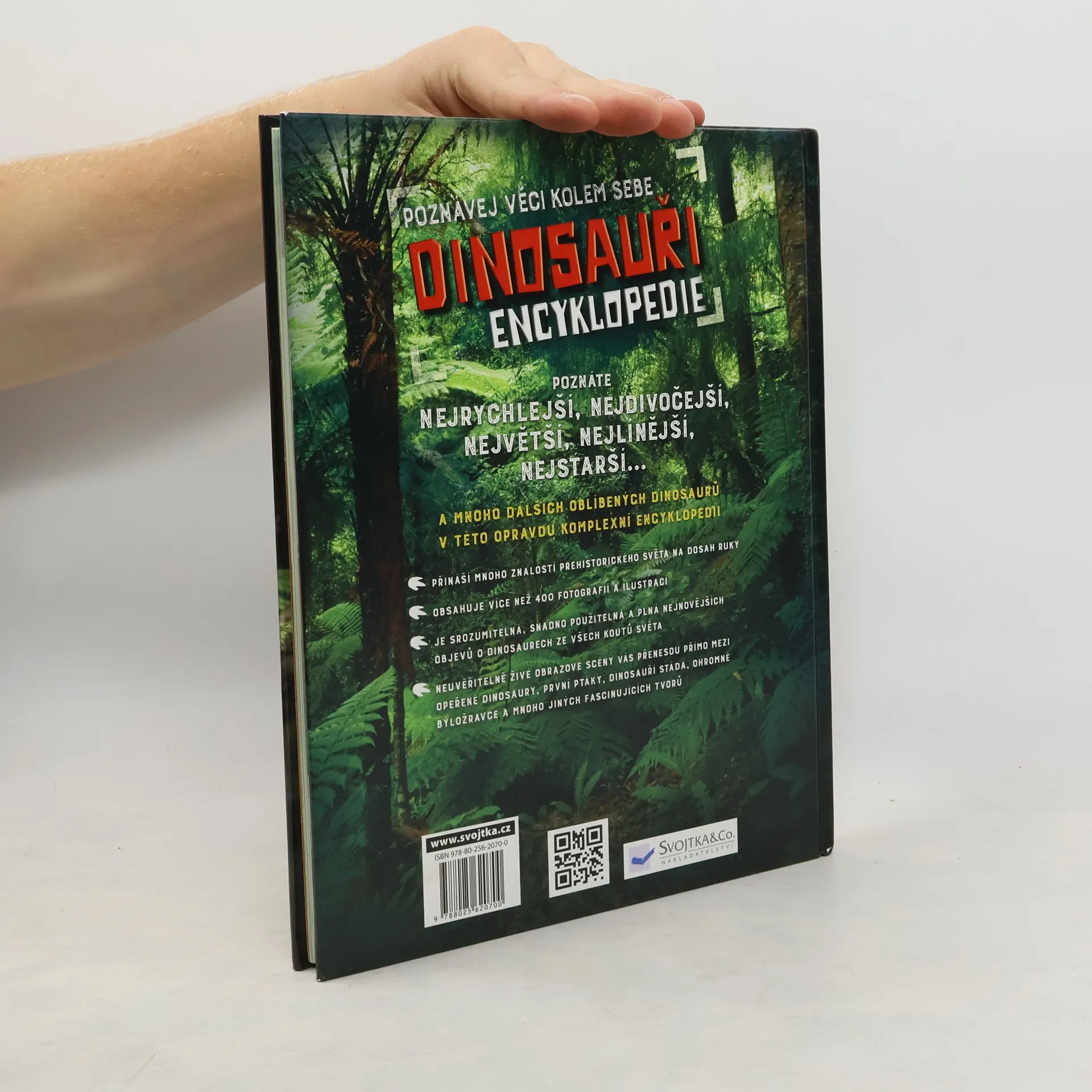 Tato velká encyklopedie dinosaurů přináší obrovské množství poznatků o životě v pravěku a o dinosaurech, kteří vám ožijí před očima. Je srozumitelná, přehledná a plná nejnovějších objevů o dinosaurech ze všech koutů světa. Najdete v ní neuvěřitelně živé obrazové scény, které vás přenesou rovnou mezi dinosaury – uvidíte hrozivé masožravce, dinosauří stáda, ohromné býložravce a mnoho jiných fascinujících tvorů včetně prapředků dnešních ptáků. Obsahuje více než 400 fotografií a ilustrací.