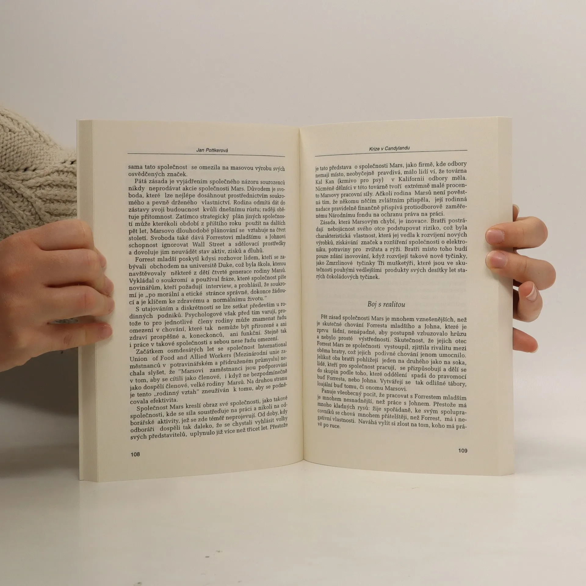 Rozklad čokoládového impéria rodiny Marsů. Snickers, M&M´s, Dove Bars, rýže Uncl Bens... Jan Pottkerová je první autorkou, která pronikla za čokoládovou oponu, odkryla charaktery osobností rodiny Marsů a zanalyzovala hierarchii vnitřní struktury společnosti Mars. Majetek rodinného impéria se odhaduje na 12 miliard dolarů.