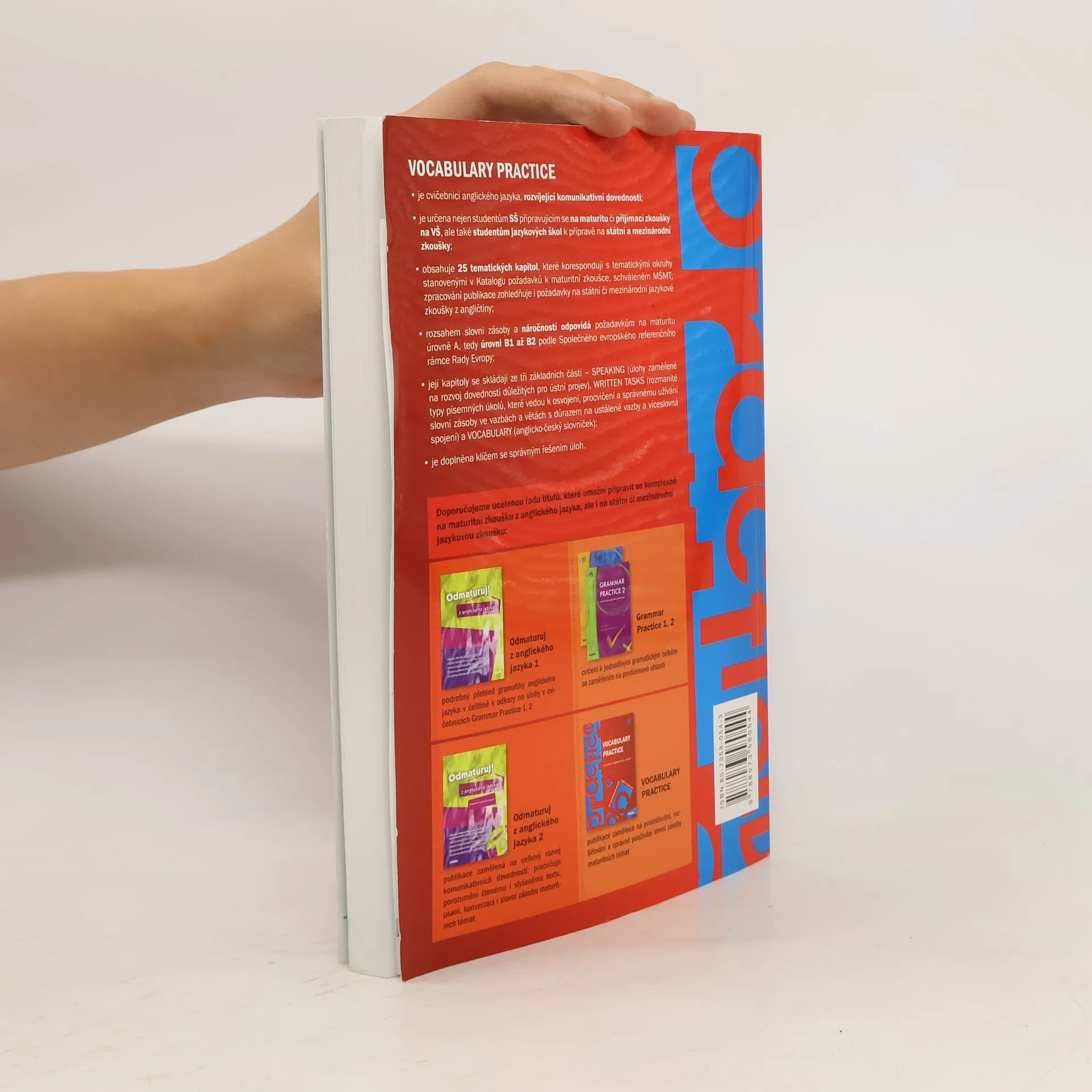 Cvičebnice anglické slovní zásoby je rozdělena podle témat nové maturity z anglického jazyka. Každé téma obsahuje konverzační i písemné úkoly zaměřené na procvičování a rozšiřování potřebné slovní zásoby. Cvičení se zaměřují na používání slovní zásoby v celých slovních spojeních nebo ve větách. Mnohé úkoly se řeší ve více krocích – od utvoření slova, přes jeho správné přiřazení až po jeho užití. Úkoly jsou navíc poutavě ztvárněny a doplněny fotografiemi, obrázky, grafy, křížovkami. Je vhodná zejména pro práci ve skupině v hodinách angličtiny na SŠ a JŠ, ale také pro samostatnou přípravu k maturitě nebo jiné jazykové zkoušce. Je určená pro středně pokročilé (náročnost B1-B2).