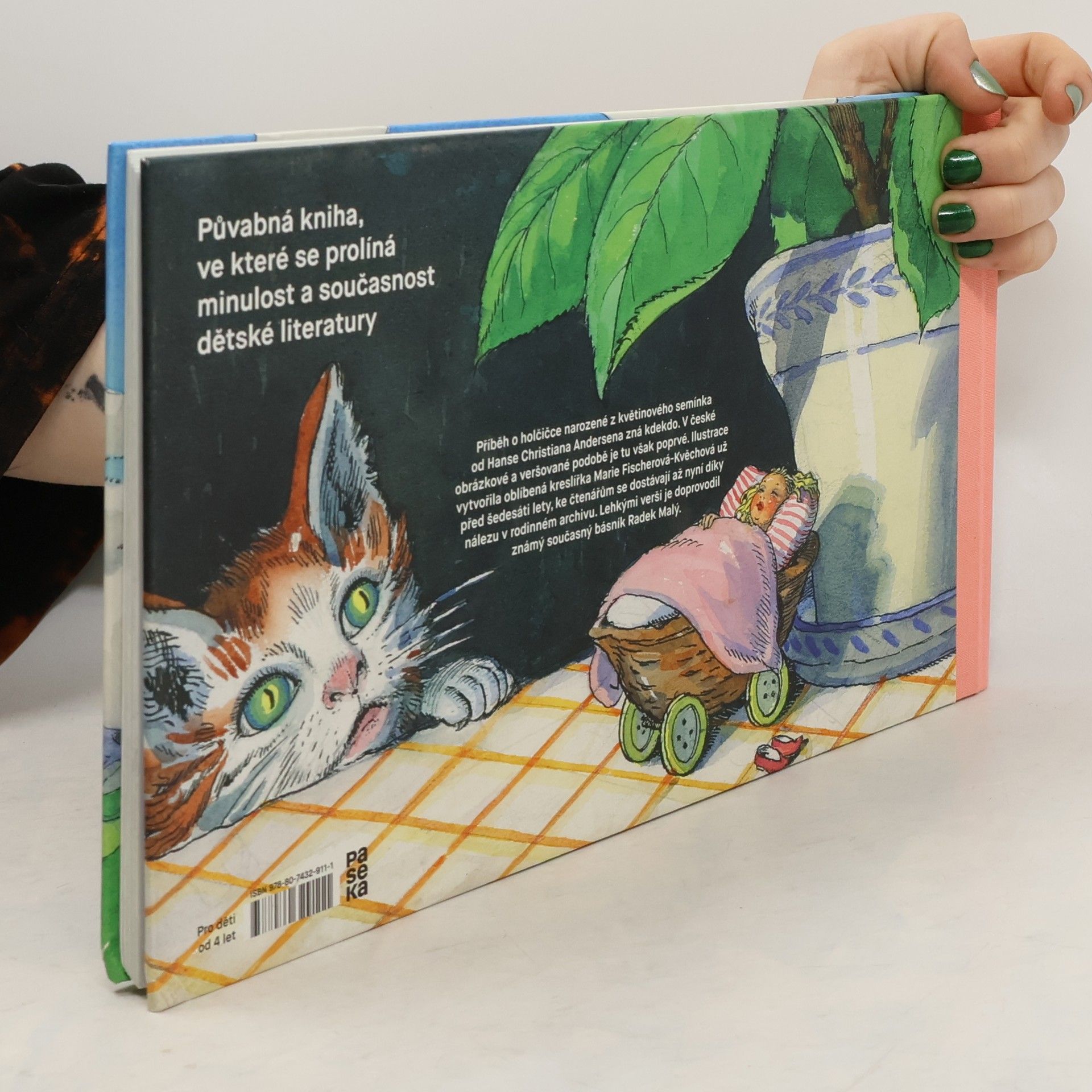 Příběh o maličké holčičce narozené z květinového semínka od Hanse Christiana Andersena zná kdekdo. V české obrázkové a veršované podobě je tu však poprvé. Ilustrace vytvořila oblíbená kreslířka Marie Fischerová-Kvěchová už před šedesáti lety, ale ke čtenářům se dostávají až nyní díky nálezu v rodinném archivu. Lehkými melodickými verši je doprovodil známý současný básník Radek Malý. Vznikla tak působivá, půvabná kniha, ve které se prolíná minulost a současnost dětské literatury.