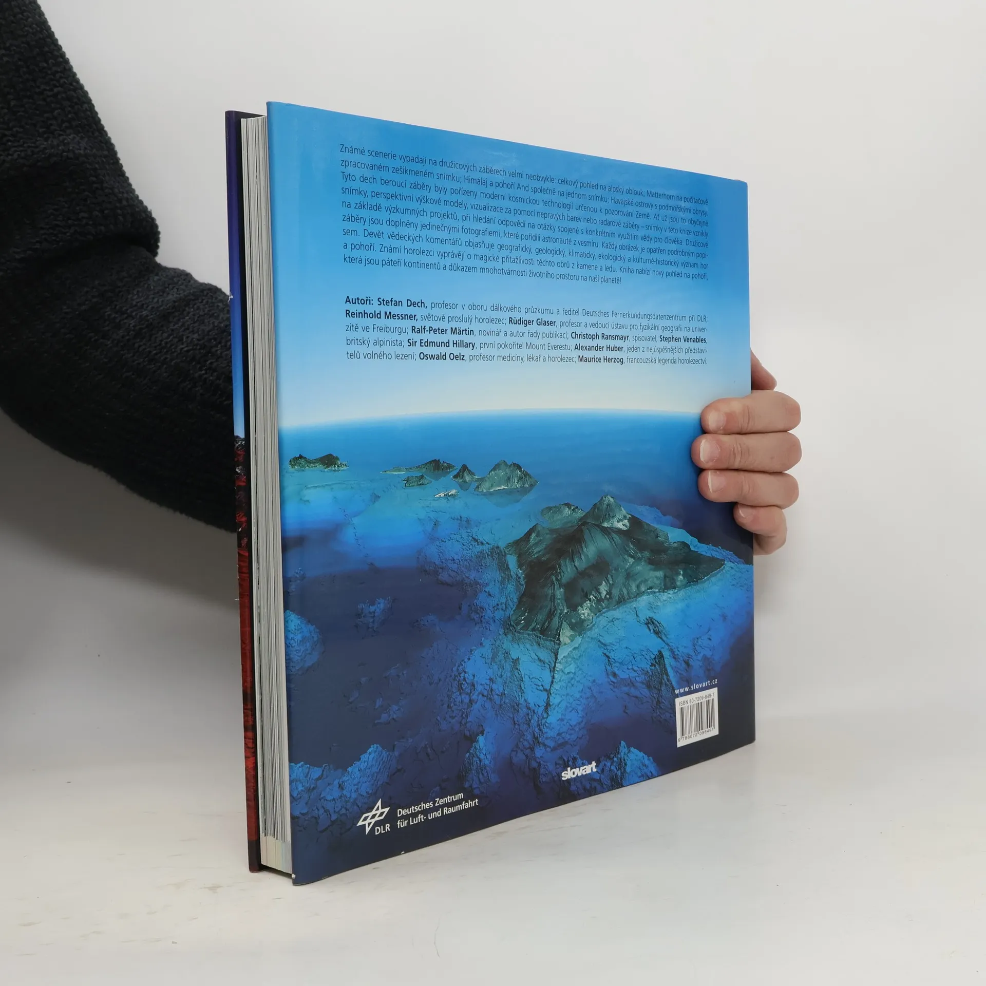 Známé scenérie vypadají na družicových záběrech velmi neobvykle: celkový pohled na alpský oblouk; Matterhorn na počítačově zpracovaném zešikmeném snímku; Himálaj a pohoří And společně na jednom snímku; Havajské ostrovy s podmořskými obrysy. Tyto dech beroucí záběry byly pořízeny moderní kosmickou technologií určenou k pozorování Země. Ať už jsou to obyčejné snímky, perspektivní výškové modely, vizualizace za pomocí nepravých barev nebo radarové záběry – snímky v této knize vznikly na základě výzkumných projektů, při hledání odpovědí na otázky spojené s konkrétním využitím vědy pro člověka. Družicové záběry jsou doplněny jedinečnými fotografiemi, které pořídili astronauté z vesmíru. Každý obrázek je opatřen podrobným popisem. Devět vědeckých komentářů objasňuje geografický, geologický, klimatický, ekologický a kulturně-historický význam hor a pohoří. Známí horolezci vyprávějí o magické přitažlivosti těchto obrů z kamene a ledu. Kniha nabízí nový pohled na pohoří, která jsou páteří kontinentů a důkazem mnohotvárnosti životního prostoru na naší planetě!