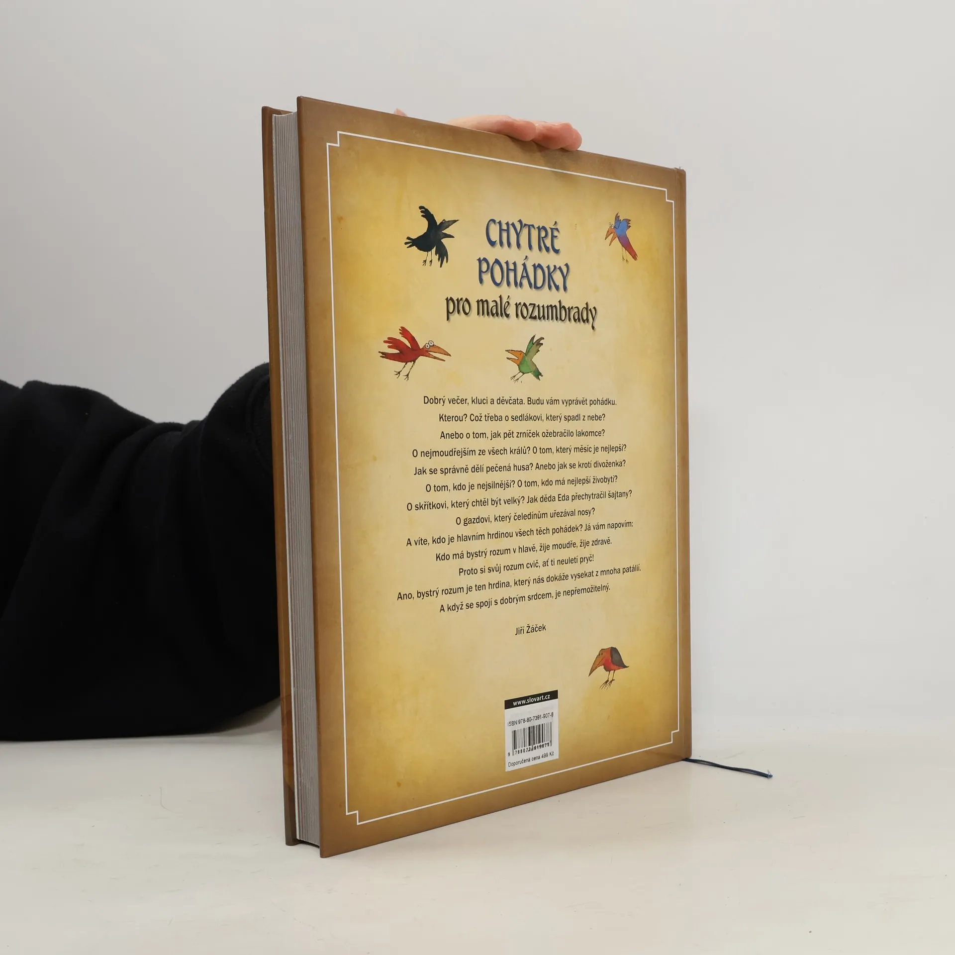 Kromě fantastických pohádek, kde se to hemží nadpřirozenými bytostmi a čaruje se ostošest, existují i pohádky, ve kterých se nevyskytují pohádkové obludy, kde nevítězí mocné kouzlo či hrubá síla, ale navrch má rozum, moudrost a vtip. Hrdiny chytrých pohádek bývají lidé zdánlivě obyčejní, kteří se v životních zkouškách téměř vždy osvědčí jako lidé naopak neobyčejní, moudří a stateční. Posilují naše sebevědomí a připomínají nám, že k vítězství nad lží a nelidskostí nepotřebujeme čaromocný meč ani pohádkového dědečka, stačí mít kuráž, bystrý rozum a dobré srdce. Není to sympatický vzkaz dávných pohádkářů dnešním rozumbradům a rozumbradkám? Kniha chytrých pohádek plných humorných situací a vtipných nápadů je třetí ze série velkých pohádkových sbírek v převyprávění Jiřího Žáčka a s ilustracemi Adolfa Borna.