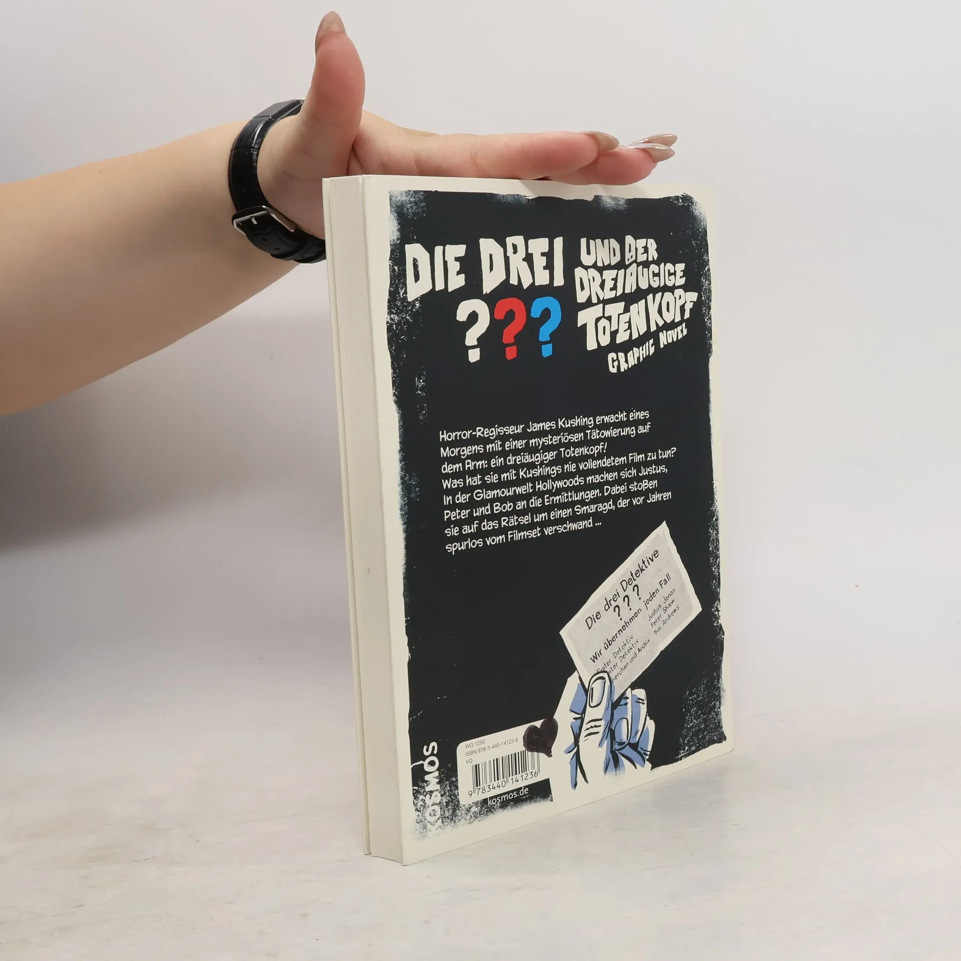 Horror-Regisseur James Kushing erwacht eines Morgens mit einer mysteriösen Tätowierung auf dem Arm: ein dreiäugiger Totenkopf! Was hat das Tattoo mit dem Film zu tun, den Kushing niemals fertiggestellt hat? Und welches Geheimnis steckt hinter dem gestohlenen Smaragd, der vor Jahren spurlos vom Filmset verschwand? Justus, Peter und Bob stürzen sich in den Fall und entdecken nach und nach die Wahrheit hinter dem Rätsel...