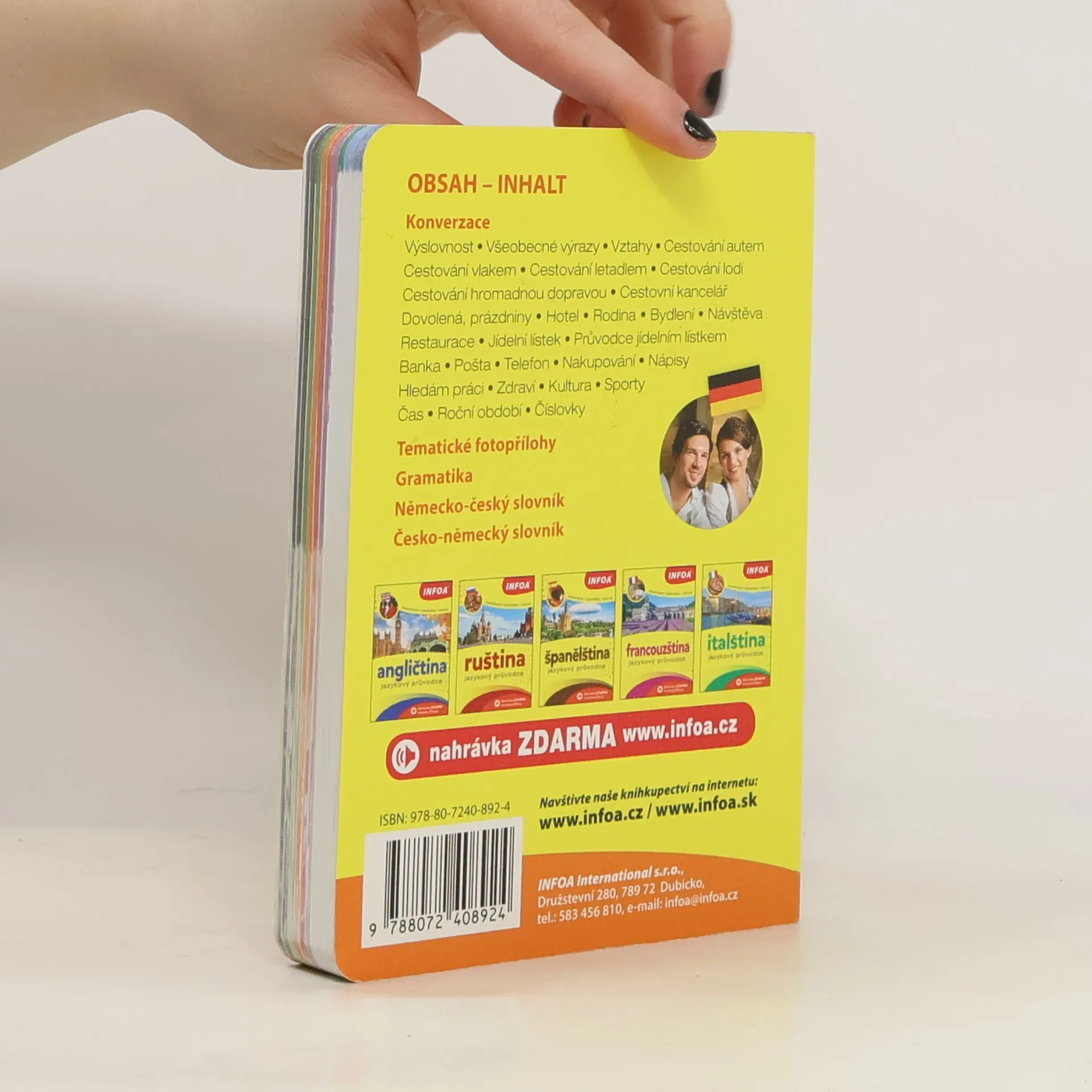 Přehledná jazyková příručka obsahuje základní konverzační témata potřebná v situacích, které nás při cestování potkávají - hotel, restaurace, nakupování atd. Dále zde najdete tematické fotopřílohy, přehled gramatiky a oboustranný slovník.