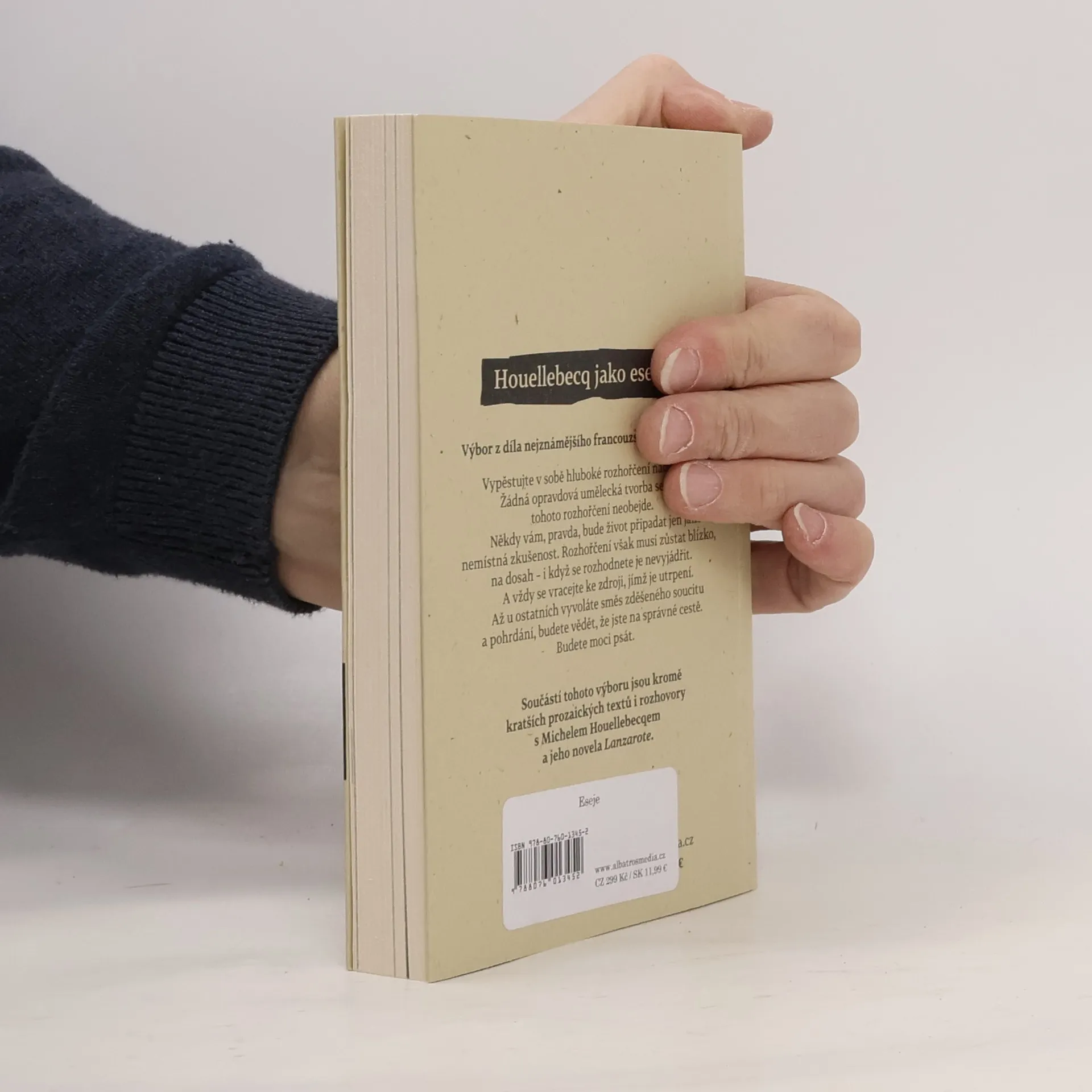 Houellebecq jako esejista. Výbor z textů nejznámějšího francouzského spisovatele. „Vypěstujte v sobě hluboké rozhořčení ze života,“ vyzývá Michel Houellebecq v eseji připomínajícím gnostickou parodii příruček osobního rozvoje. Ve výboru kratších prozaických útvarů potvrzuje pověst jednoho z nejoriginálnějších hlasů dneška, když nás zavádí na plátna němého filmu či před průčelí současné architektury. Prorok žlutých vest zde nahlíží i na průběh globalizace či liberalismus, a hlavně osvětluje, proč vždy mířit k pravdě.