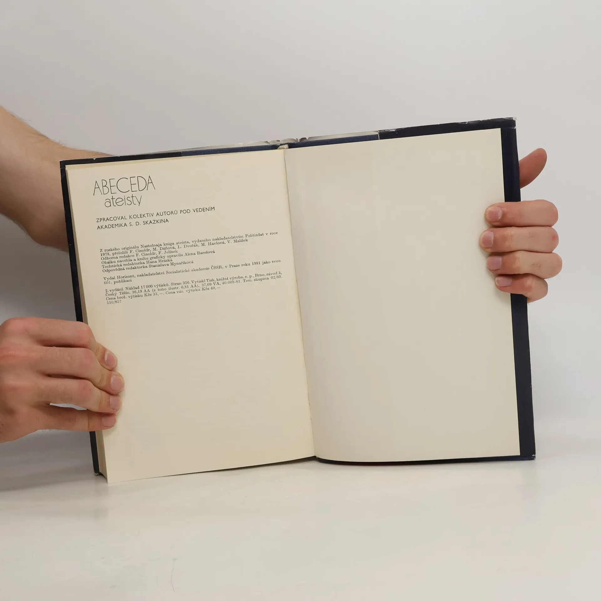 Informace, fakta a návody pro argumentaci ateistů. Zpracoval kolektiv sovětských autorů pod vedením akademika S. D. Skazkina. Encyklopedickou formou zpracovávají autoři nejdůležitější otázky z historie, teorie i praxe náboženství a ateismu. Seznamují s postavením náboženství v jednotlivýchzemích světa, charakterizují hlavní náboženské směry, zásady jejich morálky a kulty. Všímají si zvláštností náboženské psychologie, srovnávají vědecký a náboženský světový názor aj.