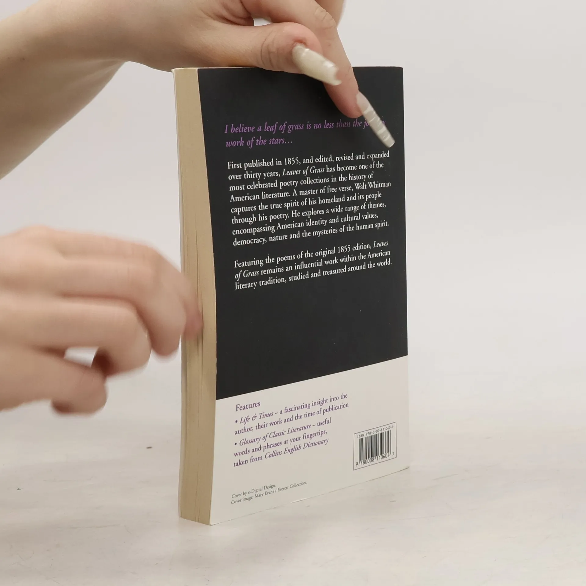 HarperCollins is proud to present its incredible range of best-loved, essential classics. I believe a leaf of grass is no less than the journey work of the stars First published in 1855, and edited, revised and expanded over thirty years, Leaves of Grass has become one of the most celebrated poetry collections in the history of American literature. A master of free verse, Walt Whitman captures the true spirit of his homeland and its people through his poetry. He explores a wide range of themes, encompassing American identity and cultural values, democracy, nature and the mysteries of the human spirit. Featuring the poems of the original 1855 edition, Leaves of Grass remains an influential work within the American literary tradition, studied and treasured around the world."
