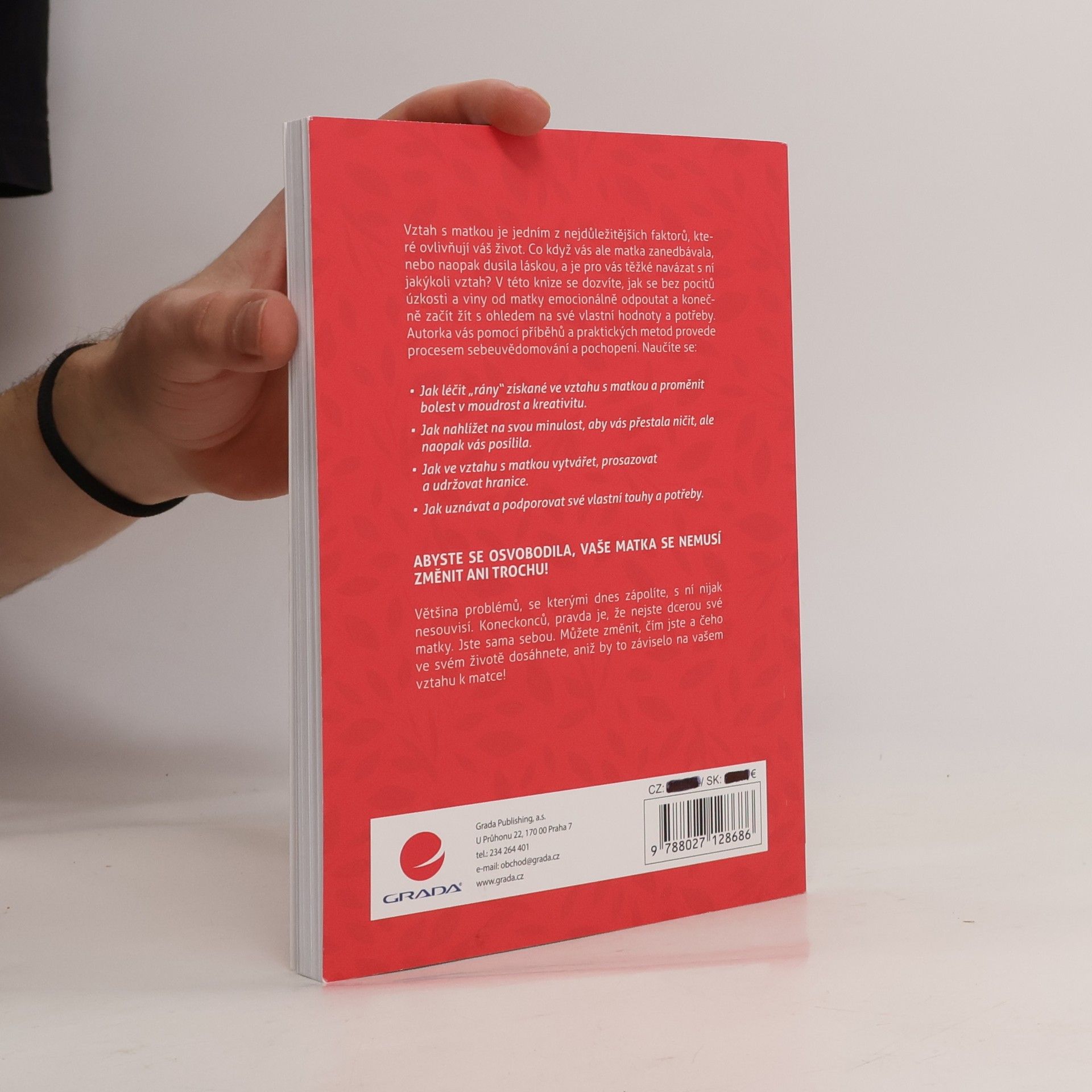 Vztah s matkou je jedním z nejdůležitějších faktorů, které ovlivňují váš život. Co když vás ale matka zanedbávala, nebo naopak dusila láskou, a je pro vás těžké navázat s ní jakýkoli vztah? V této knize se dozvíte, jak se bez pocitů úzkosti a viny od matky emocionálně odpoutat a konečně začít žít s ohledem na své vlastní hodnoty a potřeby. Autorka vás pomocí příběhů a praktických metod provede procesem sebeuvědomování a pochopení. Naučíte se: • Jak léčit „rány“ získané ve vztahu s matkou a proměnit bolest v moudrost a kreativitu. • Jak nahlížet na svou minulost, aby vás přestala ničit, ale naopak vás posílila. • Jak ve vztahu s matkou vytvářet, prosazovat a udržovat hranice. • Jak uznávat a podporovat své vlastní touhy a potřeby. ABYSTE SE OSVOBODILA, VAŠE MATKA SE NEMUSÍ ZMĚNIT ANI TROCHU! Většina problémů, se kterými dnes zápolíte, s ní nijak nesouvisí. Koneckonců, pravda je, že nejste dcerou své matky. Jste sama sebou. Můžete změnit, čím jste a čeho ve svém životě dosáhnete, aniž by to záviselo na vašem vztahu k matce!