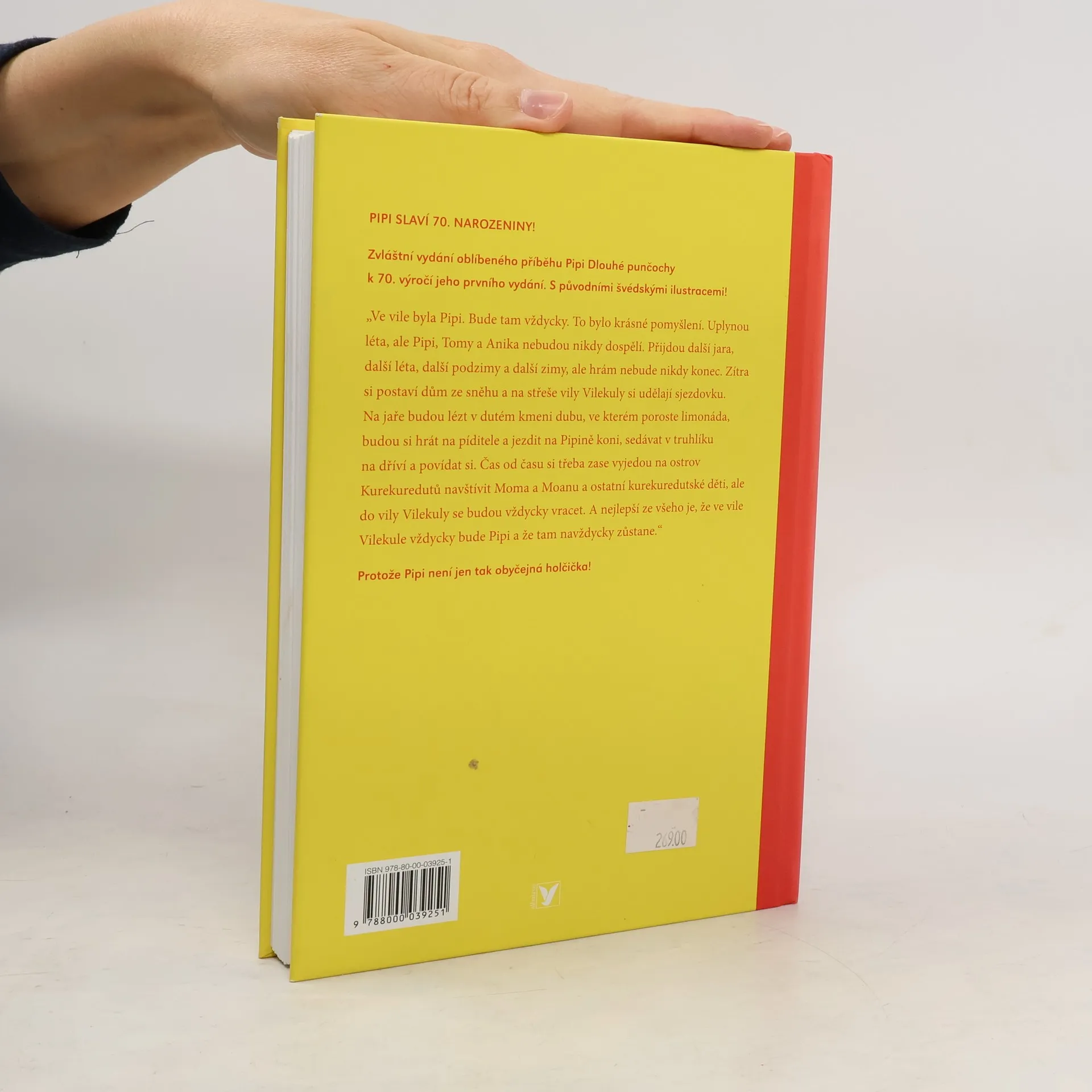 Speciální vydání s původními ilustracemi oblíbeného příběhu Pipi Dlouhé punčochy k 70. výročí od jeho prvního vydání. Ani po 70 letech od prvního vydání neztratila Pipi Dlouhá punčocha nic ze svého vtipu, kouzla a originality. Její bláznivá dobrodružství s kamarády Anikou a Tomem, opičkou panem Nilsonem a koněm nepřestávají bavit děti na celém světě ani dnes. Pipi totiž není jen tak obyčejná holčička! Ale dcera krále Kurekuredutů! Její kuráž, síla a odvaha ji ale nakonec zaručeně dostanou z každé šlamastyky. A že na ně má Pipi zvláštní talent! Pokud se stejně jako ona nemůžete rozhodnout, jestli je lepší být námořním lupičem, nebo opravdovou dámou, po přečtení téhle knížky už budete vědět.