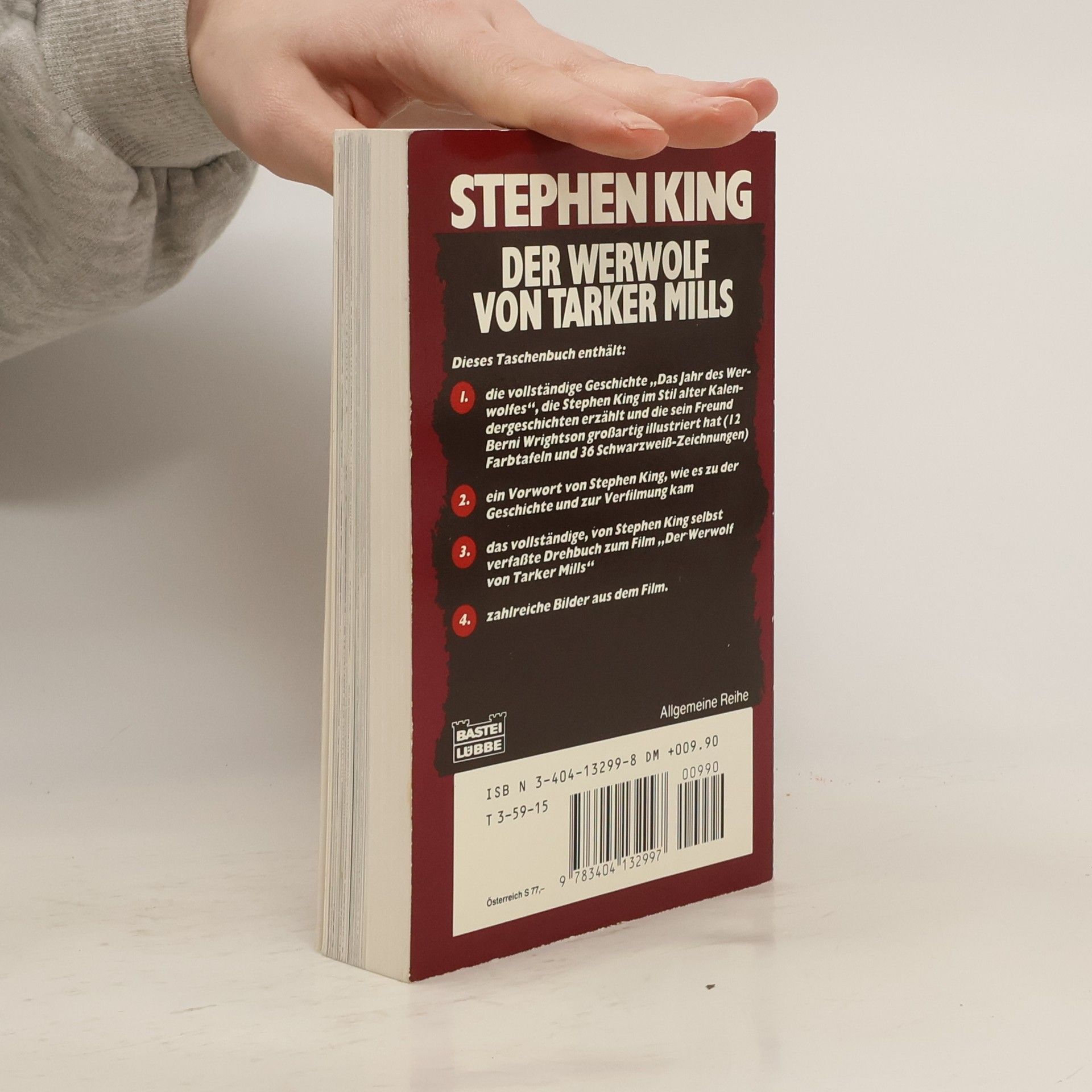 Nachts, wenn der Vollmond aufsteigt, kannst du sein Heulen hören. Dann ist es bereits zu spät für dich ... Dieses Buch enthält die vollständige Geschichte Das Jahr des Werwolfs, die Stephen King im Stil alter Kalendergeschichten erzählt und die sein Freund Berni Wrightson großartig illustriert hat (Zwölf Farb-Tafeln und sechsunddreißig Schwarzweiß-Zeichnungen); ein Vorwort von Stephen King, wie es zu der Geschichte und zu der Verfilmung kam, das vollständige von Stephen King verfasste Drehbuch zum Film »Der Werwolf von Tarker Mills«, sowie zahlreiche Bilder aus dem Film.