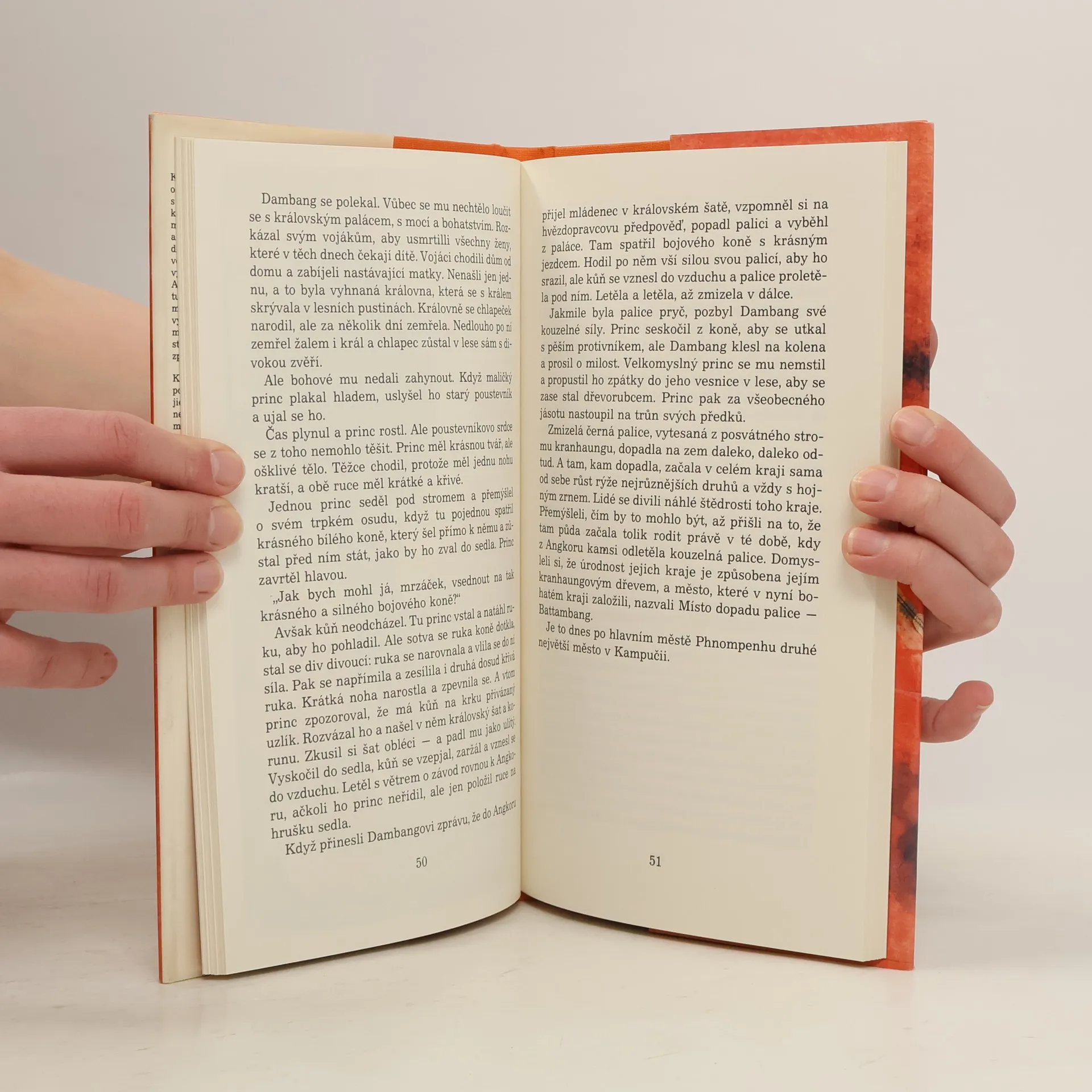 Khmerské báje a pověsti. Kampučia (dnes Kambodža), malá země v jihovýchodní Asii, o jejíž současnosti často čítáme v novinách, je země s daleko bohatší historií a kulturou než možná leckdo tuší. Její dějiny sahají skoro dva tisíce let do minulosti. Někdejší khmerská říše, rozsáhlá, bohatá a kulturně vyspělá, se rozprostírala krom území dnešní Kambodži na území skoro celého Thajska, větší části Laosu a jižního Vietnamu. V jejím středu vyrostolo v 10. stol. n. l. mohutné královské město Angkor, které mělo v době svého největšího rozkvětu skoro milión obyvatel, město s nádhernými chrámy a dalšími stavbami. Postupem doby však bylo vypleněno, obyvatelé se odstěhovali a zříceniny města pohltila džungle. Teprve na počátku našeho (dvacátého) století byly jeho památky znovu objeveny a opět zpřístupněny. Kniha, kterou vám předkládáme, je výbor z mnoha pověstí, které si khmerský lid po staletí vypráví. Jejich náměty i celkové ladění jsou pro nás v mnohém nezvyklé, ale právě tím pro evropské čtenáře zajímavější a pozoruhodnější. Že jde o čtení skutečně poutavé, to napovídají už názvy některých pověstí - Smaragdový Buddha, Věže černé bohyně, Jak se dostal vepř do zvěrokruhu a další. Věříme, že kniha, která vychází jako další svazek edice Obnovené obrazy, čtenáře zaujme. 13-879-87