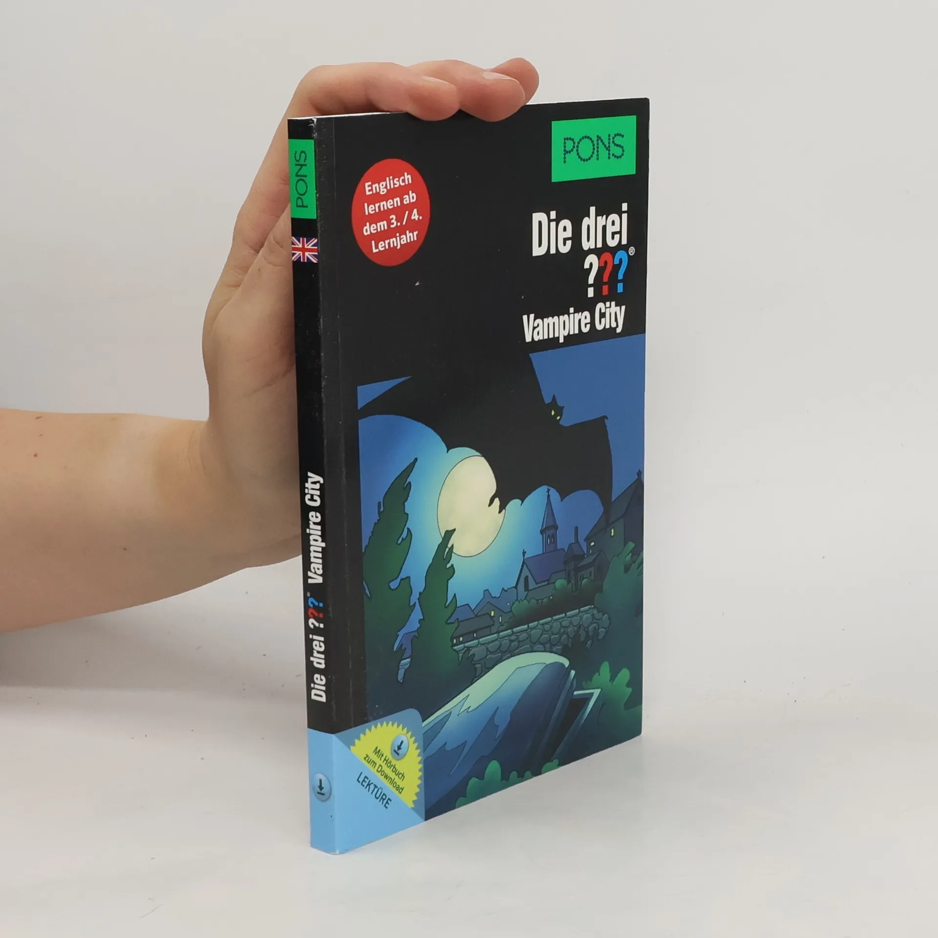 Die drei ??? auf Spurensuche Eine riesige Fledermaus versetzt das Dorf Yonderwood in Angst und Schrecken. Viele Einwohner haben schon das Weite gesucht, nachdem einige Menschen morgens mit Bissspuren und auf blutdurchtränkten Laken erwacht sind. Bisher haben die drei Detektive aus Rocky Beach nicht an Vampire geglaubt. Müssen Justus, Peter und Bob ihre Meinung in diesem neuen Fall ändern? Englisch lernen mit Justus, Peter und Bob Tauch in ein spannendes Abenteuer der drei ??? ein und lerne mit den Übersetzungshilfen viele neue Vokabeln. Trainiere Wortschatz, Verständnis und Grammatik mit zahlreichen Detektivübungen. 2-in-1: Lade dir die ganze Story als MP3-Hörbuch herunter. Für Englischlerner ab dem 3./4. Lernjahr und Fans der drei ???.