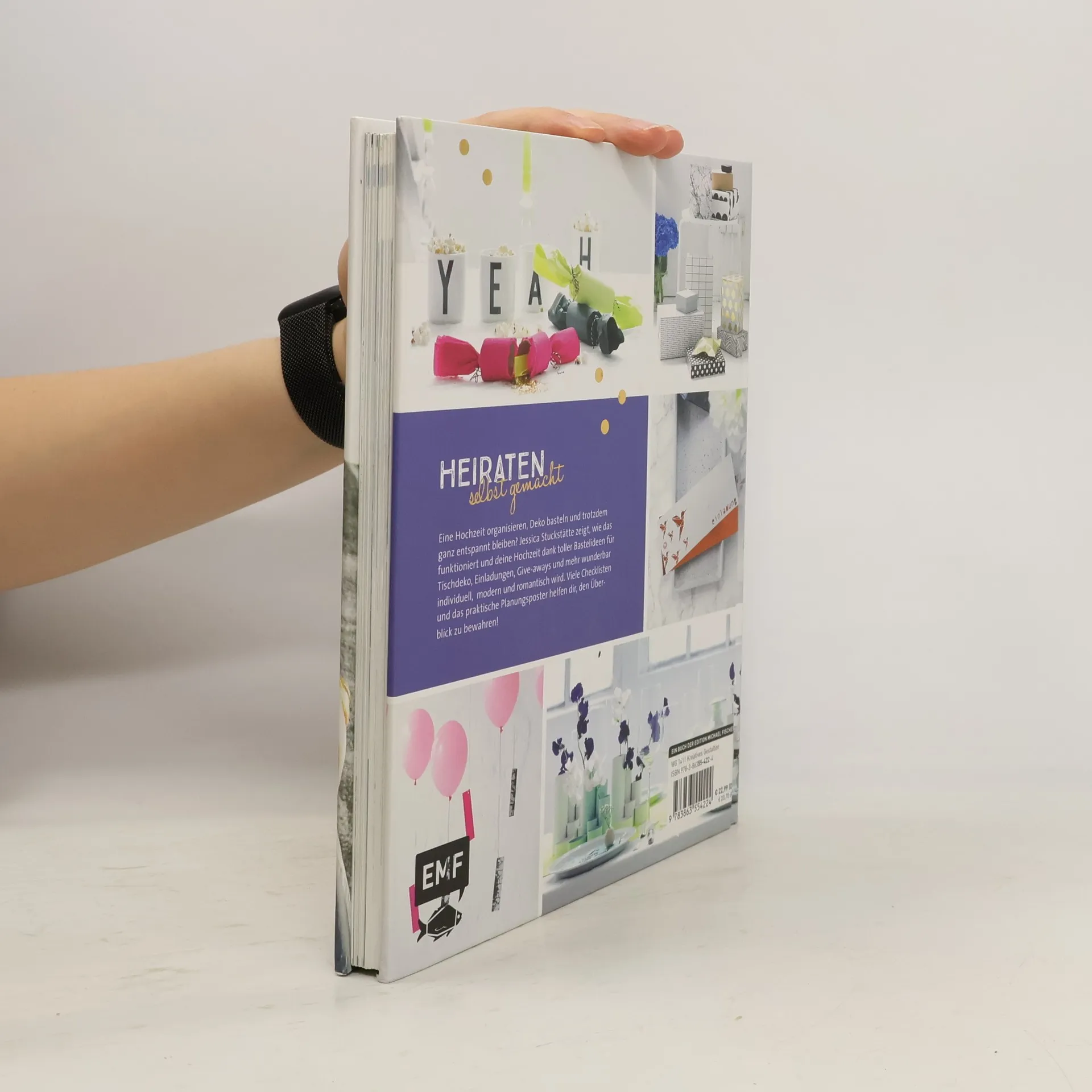 Hochzeit Handmade? – Auf jeden Fall! Jessica Stuckstätte zeigt an ihrer eigenen Hochzeit, wie man entspannt organisiert und plant und so noch locker Zeit findet, ihre einfachen, aber trotzdem beeindruckenden Projekte umzusetzen, die das Fest individuell und einzigartig machen! Es werden moderne und ausgefallene, dabei aber schnell und einfach umzusetzende Projekte gezeigt, um die Location individuell zu dekorieren, Einladungskarten zu zaubern, kleine Give-aways zu gestalten und das eigene Styling mit selbst gemachten Accessoires zu ergänzen. Dabei gehen die Ideen von spektakulären Girlanden und Leuchtringen über einen Tüllrock und einen Tortenspitzenvorhang bis zu einem Gästebuch der besonderen Art. Praktische Checklisten im Buch und auf dem beigelegten Poster helfen, den Überblick über die Planung zu bewahren.