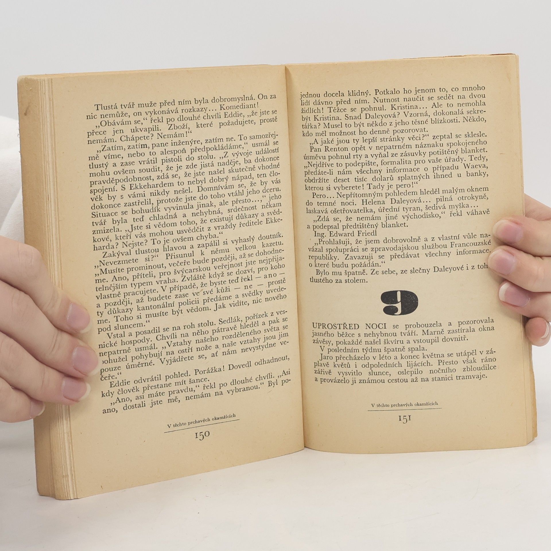 Špionážní román, odehrávající se v současné době ve Švýcarsku, vypráví o prchavých okamžicích soukromého života československého tajného agenta, který pod záminkou studijní činnosti pátrá po tajných fondech uloženého nacistického kapitálu a sleduje jeho pohyb na tajný vývoj raketových a jaderných zbraní. Příběh, ve kterém se do okamžiků agentova napětí při pátracích akcích prolínají vzpomínky na jeho rozbité manželství a stejně rozbitý a nenaplněný milostný vztah. (www.pitaval.cz)