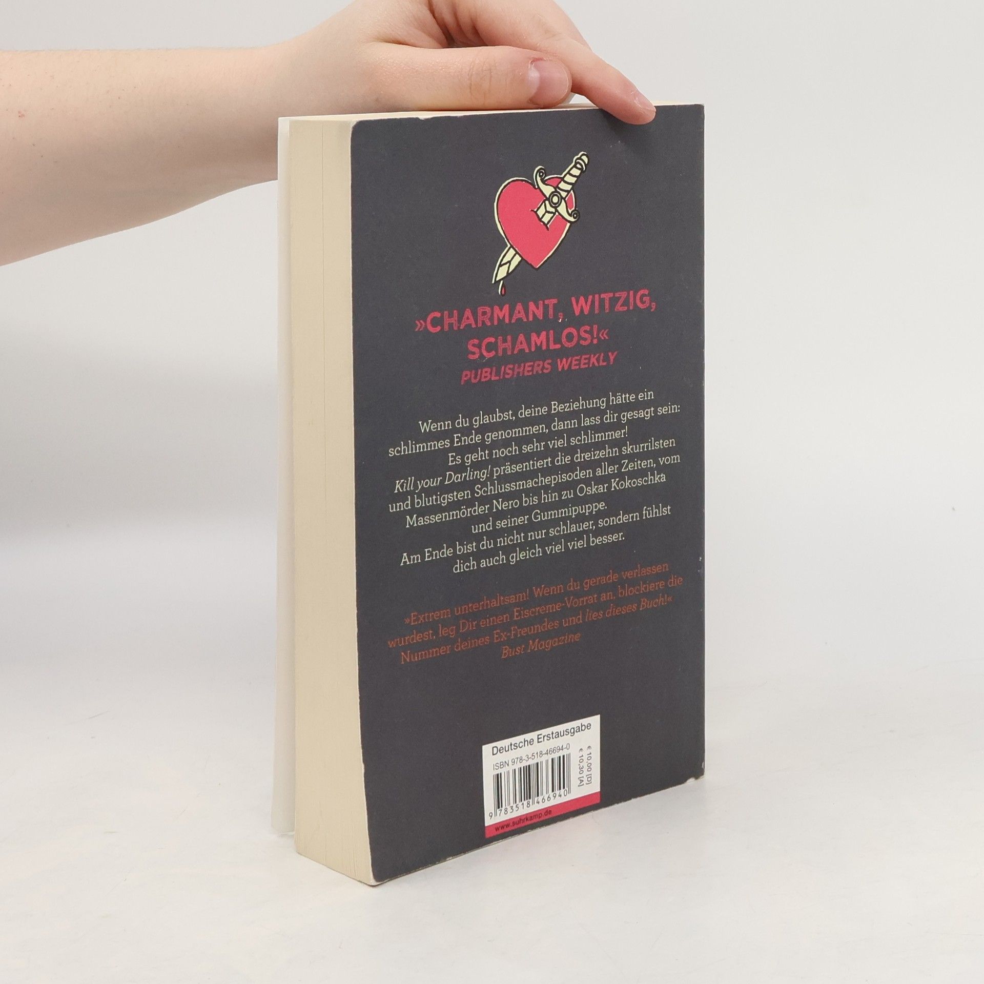 Stell dir vor, du sitzt mit einer Packung Eiscreme in der einen, einer Flasche Gin in der anderen Hand auf dem Sofa, Tränen rinnen deine Wangen hinab und du wiederholst mantrahaft, wie sehr du deinen Ex geliebt hast. Lass dir gesagt sein: Es könnte viel schlimmer sein! Du könntest beispielsweise von deinem Verflossenen enthauptet werden, aus Rache fremde Männer kastrieren oder das Leben mit einer Sexpuppe verbringen. In Kill your Darling! präsentiert die New Yorker Journalistin Jennifer Wright die dreizehn skurrilsten und blutigsten Schlussmachepisoden der Geschichte – vom Massenmörder Nero bis hin zu Oskar Kokoschka –, boshaft-ironisch und doch mit der richtigen Dosis Empathie. Ein Buch für alle, die geliebt haben und verlassen wurden; für alle, die spätnachts zu viele Wut-E-Mails an ihre Verflossenen geschickt haben. Mit diesen Storys wird schnell klar: Was auch immer passiert ist, es hätte noch viel, viel schlimmer kommen können …