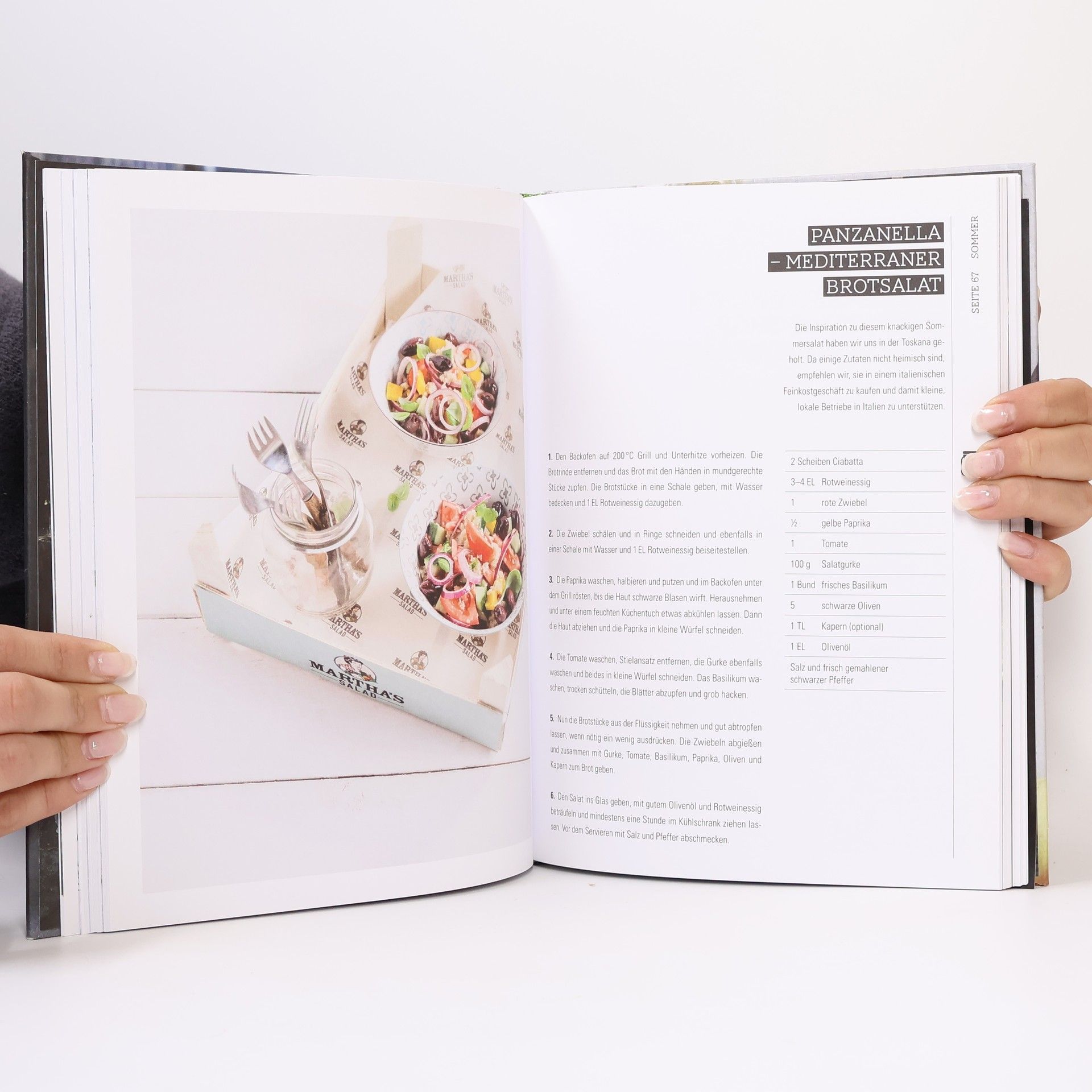 Salat ist gesund, das ist unstrittig. Salat im Glas ist mehr: gesund, clever geschichtet, bunt und abwechslungsreich, praktisch und schön verpackt! Perfekt zum Mitnehmen ins Büro oder zum Picknick und ideal als Vorspeise, wenn Gäste kommen. Wie man aus verschiedensten Zutaten die besten Salate im Glas kombiniert, haben Séverine Goetz und Sabrina Zbinden in Kalifornien am Marktstand von Martha entdeckt, die Idee mit nach Europa genommen und ihre Salatbar Martha gewidmet – Martha’s Salad! Daraus ist jetzt ein Buch voller ideenreicher Rezepte mit saisonalen und möglichst regionalen Zutaten entstanden, mit Salaten, die reich an Nährstoffen und Vitaminen sind, gesund satt machen und die benötigte Energie liefern: mal mit Fleisch oder Fisch, mal vegetarisch oder vegan, ergänzt mit Tipps für proteinreiche Salate für Sportler und natürlich mit Dressings, Toppings und dem passenden Brot.