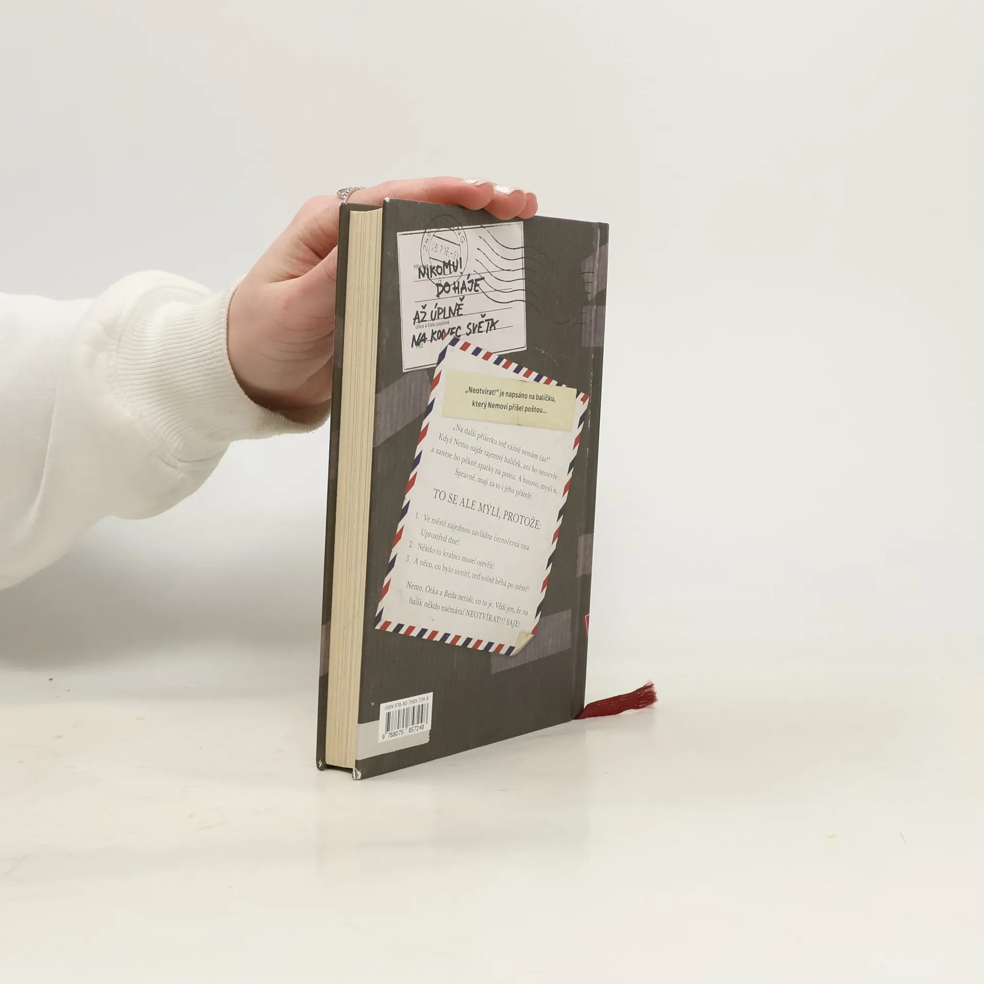 Nemo už toho má dost! Zrovna teď, když se musí učit na písemku z matematiky! Na další příšerku teď vážně nemá čas! Když zase u dveří najde balíček, ani ho neotevře a odnese ho zpátky na poštu. Správně, myslí si on i jeho kamarádi. Ve městě se přesto začnou dít neuvěřitelné věci. Horní Suchopár najednou pohltí černočerná tma. A nejen to. Někdo ten balíček musel otevřít! A to, co bylo uvnitř, teď běhá po městě! Nemo, Otka a Béda vůbec netuší, co to je. Vědí jen, že na balík někdo načmáral: „Neotvírat! Saje!“ Všichni dostanou strach. Co teď? První dva díly z řady Neotvírat! měly u dětských čtenářů úspěch. Teď je tu třetí díl. Tajemné, možná i trochu strašidelné dobrodružství tří přátel - Nema, Otky a Bédy, kteří se ze všech sil snaží zachránit město. Příběh o kamarádství a o věcech, které jsou opravdu důležité, potěší nejen dětské čtenáře. Svým vtipem a nezaměnitelnými ilustracemi Fréderica Bertranda kniha pobaví i rodiče, kteří při čtení na dobrou noc určitě neusnou...