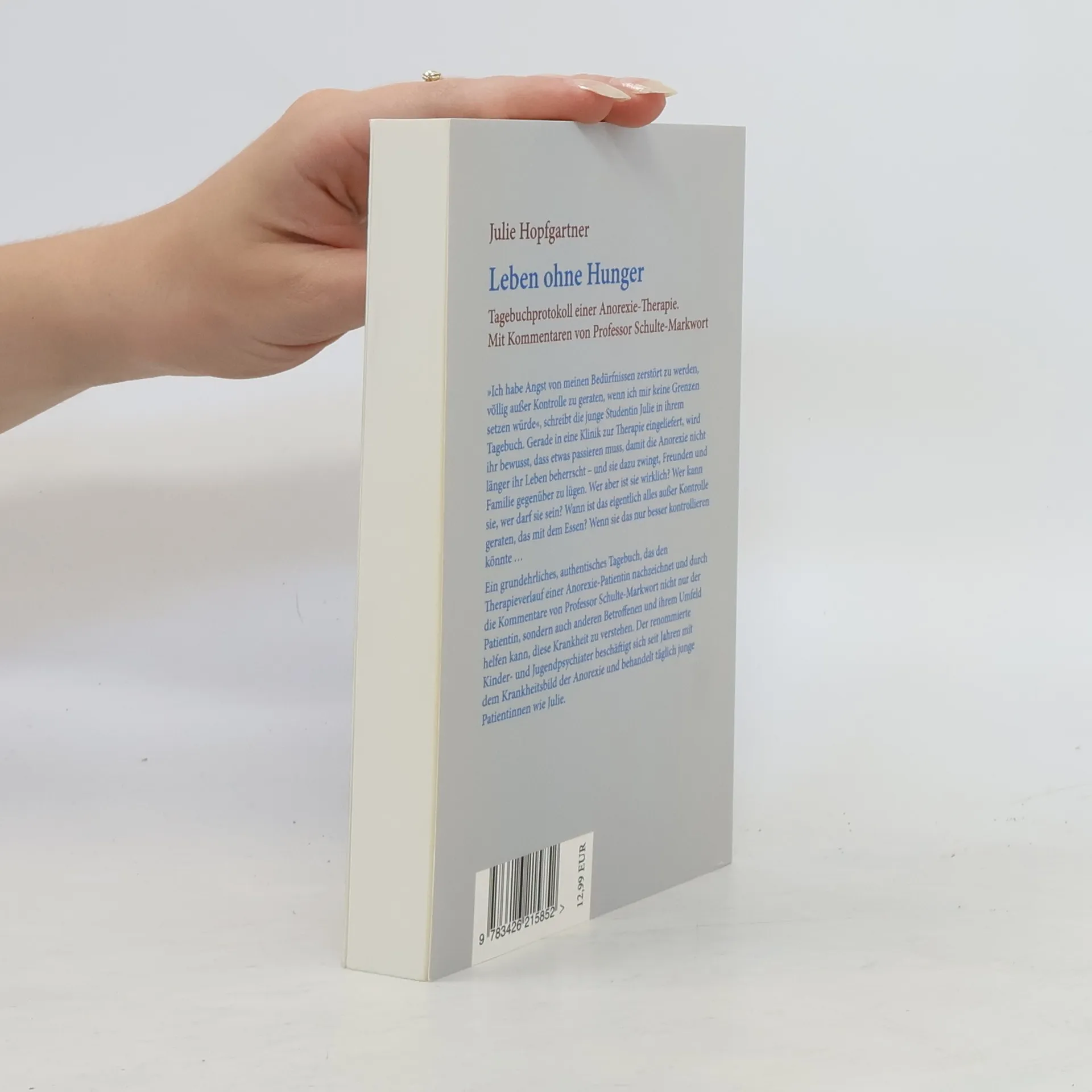»Ich habe Angst von meinen Bedürfnissen zerstört zu werden, völlig außer Kontrolle zu geraten, wenn ich mir keine Grenzen setzen würde«, schreibt die junge Studentin Julie in ihrem Tagebuch. Gerade in eine Klinik zur Therapie eingeliefert, wird ihr bewusst, dass etwas passieren muss, damit die Anorexie nicht länger ihr Leben beherrscht – und sie dazu zwingt, Freunden und Familie gegenüber zu lügen. Wer aber ist sie wirklich? Wer kann sie, wer darf sie sein? Wann ist das eigentlich alles außer Kontrolle geraten, das mit dem Essen? Wenn sie das nur besser kontrollieren könnte … Ein grundehrliches, authentisches Tagebuch, das den Therapieverlauf einer Anorexie-Patientin nachzeichnet und durch die Kommentare von Professor Schulte-Markwort nicht nur der Patientin, sondern auch anderen Betroffenen und ihrem Umfeld helfen kann, diese Krankheit zu verstehen. Der renommierte Kinder- und Jugendpsychiater beschäftigt sich seit Jahren mit dem Krankheitsbild der Anorexie und behandelt täglich junge Patientinnen wie Julie.