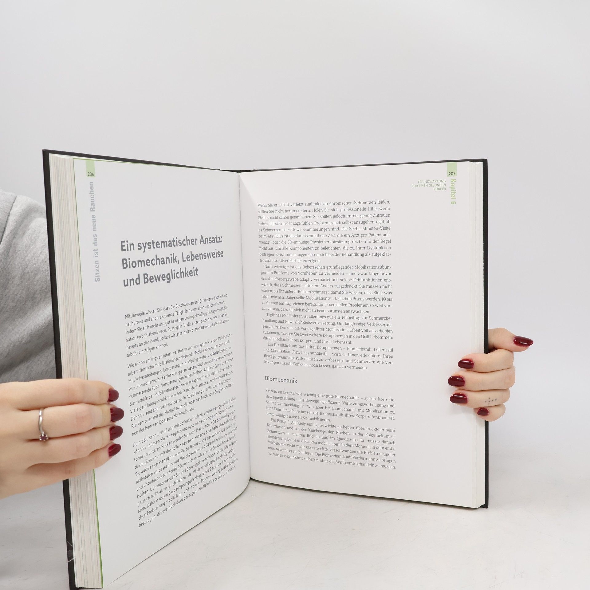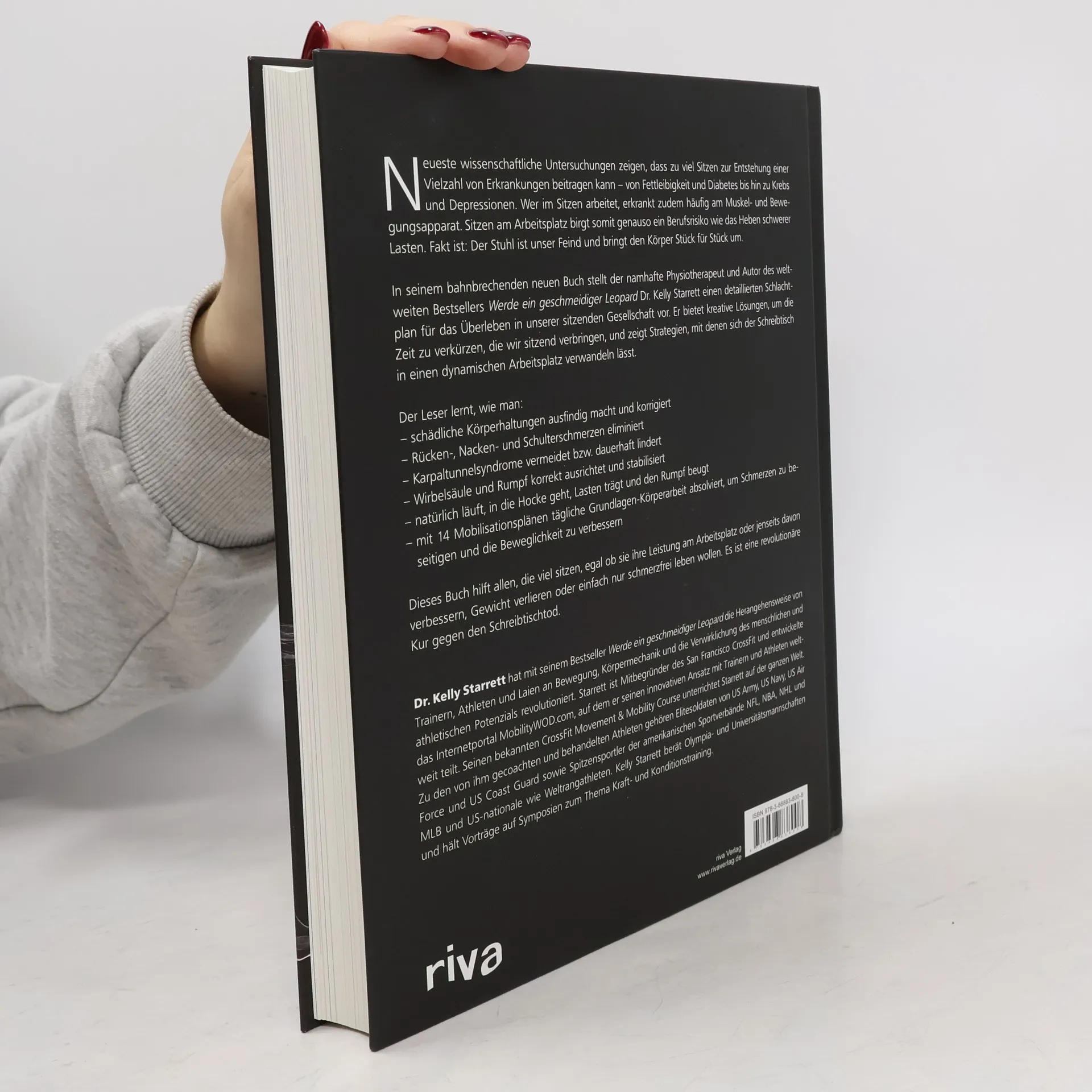 Neueste wissenschaftliche Untersuchungen zeigen, dass zu viel Sitzen eine Vielzahl von Erkrankungen begünstigt – von Fettleibigkeit und Diabetes bis hin zu Krebs und Depressionen. Menschen, die im Sitzen arbeiten, leiden zudem häufig an Muskel- und Bewegungsschmerzen. Sitzen am Arbeitsplatz stellt somit ein ernsthaftes Gesundheitsrisiko dar. In seinem neuen Buch präsentiert der renommierte Physiotherapeut Dr. Kelly Starrett einen detaillierten Plan, um in unserer sitzenden Gesellschaft zu überleben. Er bietet kreative Lösungen, um die Sitzzeit zu reduzieren, und zeigt, wie man einen Schreibtisch in einen dynamischen Arbeitsplatz verwandelt. Der Leser lernt, schädliche Körperhaltungen zu erkennen und zu korrigieren, Rücken-, Nacken- und Schulterschmerzen zu beseitigen sowie Karpaltunnelsyndrome zu vermeiden. Zudem wird vermittelt, wie man die Wirbelsäule und den Rumpf korrekt ausrichtet und stabilisiert, natürlich läuft, in die Hocke geht und Lasten trägt. Mit 14 Mobilisationsplänen wird tägliche Körperarbeit zur Schmerzlinderung und Verbesserung der Beweglichkeit angeboten. Dieses Buch richtet sich an alle, die viel sitzen, sei es zur Leistungssteigerung am Arbeitsplatz, zur Gewichtsreduktion oder einfach für ein schmerzfreies Leben. Es ist eine revolutionäre Lösung gegen den Schreibtischtod.