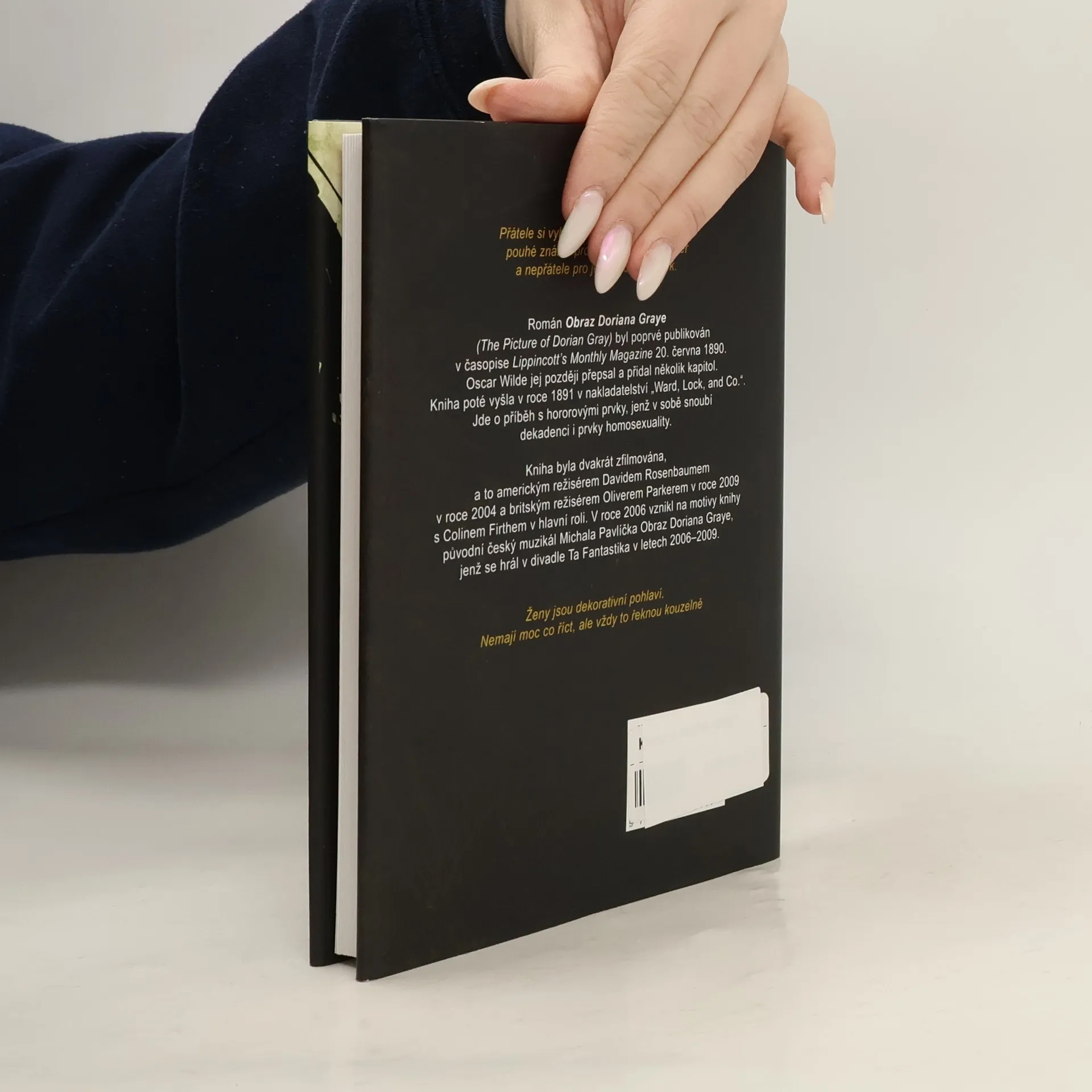 Klasický psychologický román, fantastický příběh aristokrata, jemuž kouzelná moc umění propůjčila věčnou krásu a mládí. Dorian Gray zůstává stále dvacetiletý, jeho podoba na plátně stárne a ohyzdní podle toho, kolik dívčích srdcí zlomil a kolik mladíků uvedl do zkázy.