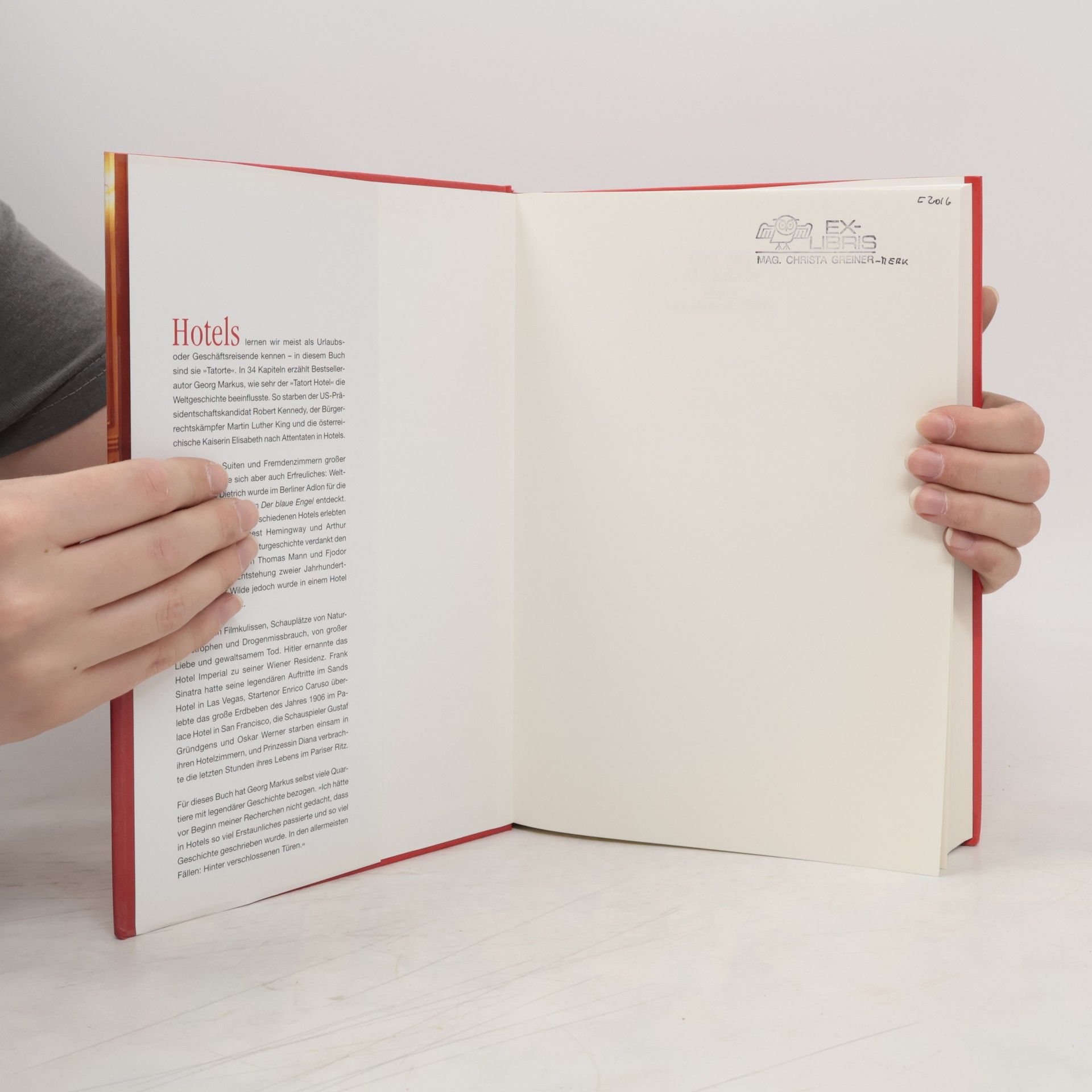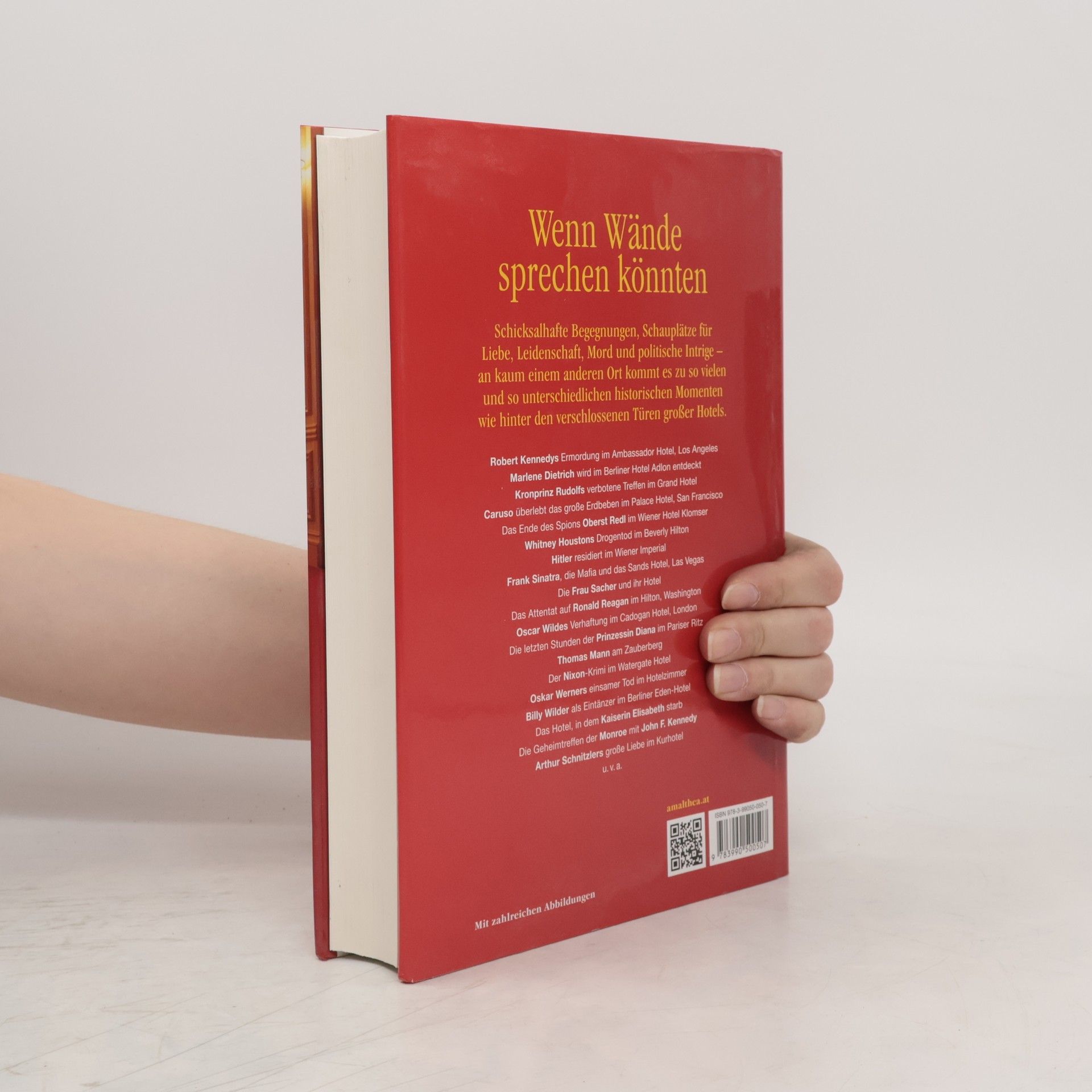Wenn Wände sprechen könntenSchicksalhafte Begegnungen, Schauplätze für Liebe, Leidenschaft, Mord und politische Intrige – an kaum einem anderen Ort kommt es zu so vielen und so unterschiedlichen historischen Momenten wie hinter den verschlossenen Türen großer Hotels.Robert Kennedys Ermordung im Ambassador Hotel, Los AngelesMarlene Dietrich wird im Berliner Hotel Adlon entdecktKronprinz Rudolfs verbotene Treffen im Grand HotelCaruso überlebt das große Erdbeben im Palace Hotel, San FranciscoDas Ende des Spions Oberst Redl im Wiener Hotel KlomserWhitney Houstons Drogentod im Beverly HiltonHitler residiert im Wiener ImperialFrank Sinatra, die Mafia und das Sands Hotel, Las VegasDie Frau Sacher und ihr HotelDas Attentat auf Ronald Reagan im Hilton, WashingtonOscar Wildes Verhaftung im Cadogan Hotel, LondonDie letzten Stunden der Prinzessin Diana im Pariser RitzThomas Mann am ZauberbergDer Nixon-Krimi im Watergate HotelOskar Werners einsamer Tod im HotelzimmerBilly Wilder als Eintänzer im Berliner Eden-HotelDas Hotel, in dem Kaiserin Elisabeth starbDie Geheimtreffen der Monroe mit John F. Kennedy in New YorkArthur Schnitzlers große Liebe in Kurhotelu. v. a.Mit zahlreichen Abbildungen