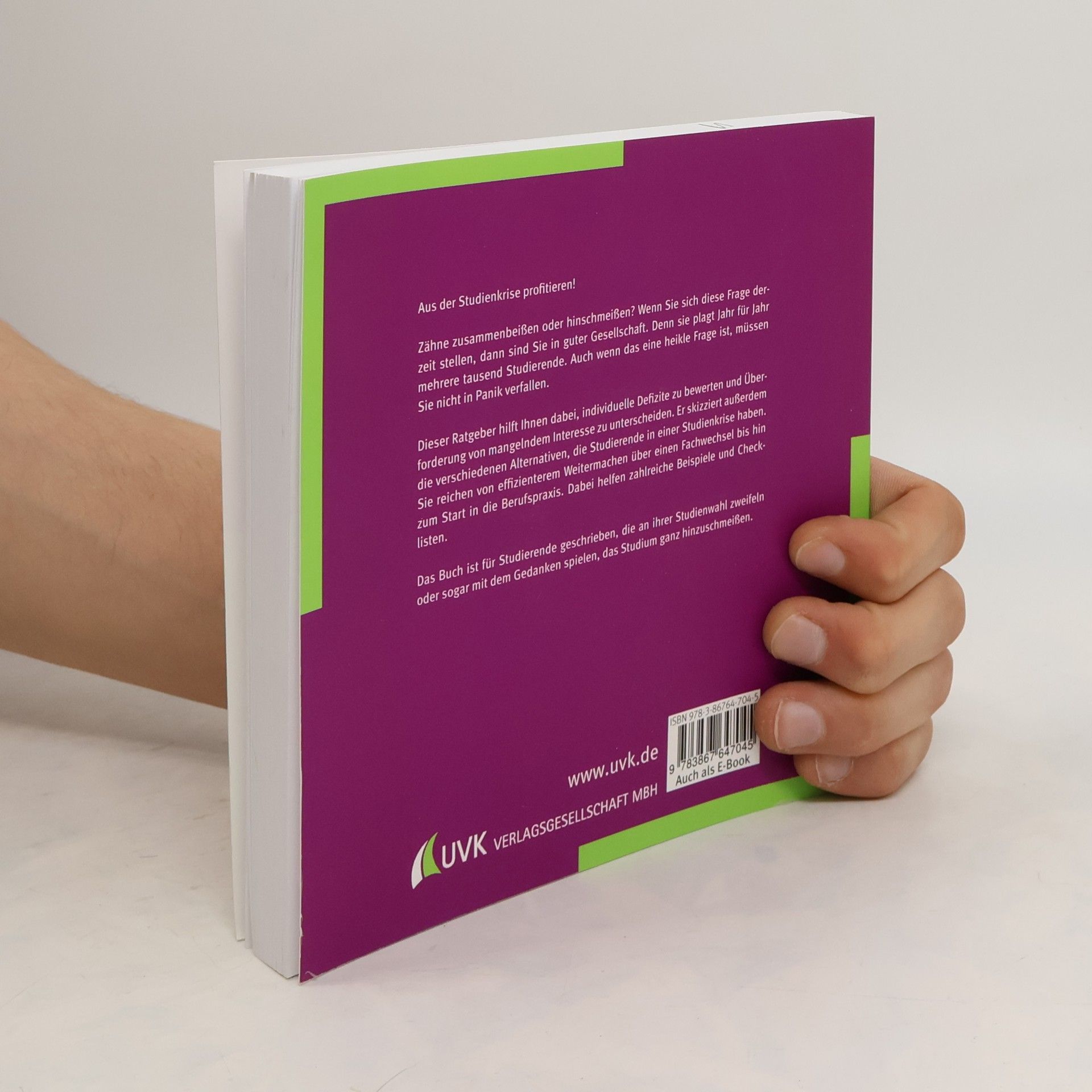 Aus der Studienkrise profitieren! Zähne zusammenbeißen oder hinschmeißen? Wenn Sie sich diese Frage derzeit stellen, dann sind Sie in guter Gesellschaft. Denn sie plagt Jahr für Jahr mehrere tausend Studierende. Auch wenn das eine heikle Frage ist, müssen Sie nicht in Panik verfallen! Dieser Ratgeber hilft Ihnen dabei, individuelle Defizite zu bewerten und Überforderung von mangelndem Interesse zu unterscheiden. Er skizziert die verschiedenen Alternativen, die Studierende in einer Studienkrise haben. Sie reichen von effizienterem Weitermachen über einen Fachwechsel bis hin zum Start in die Berufspraxis. Dabei helfen zahlreiche Beispiele und Checklisten. Das Buch ist für Studierende geschrieben, die an ihrer Studienwahl zweifeln oder sogar mit dem Gedanken spielen, das Studium ganz hinzuschmeißen.
