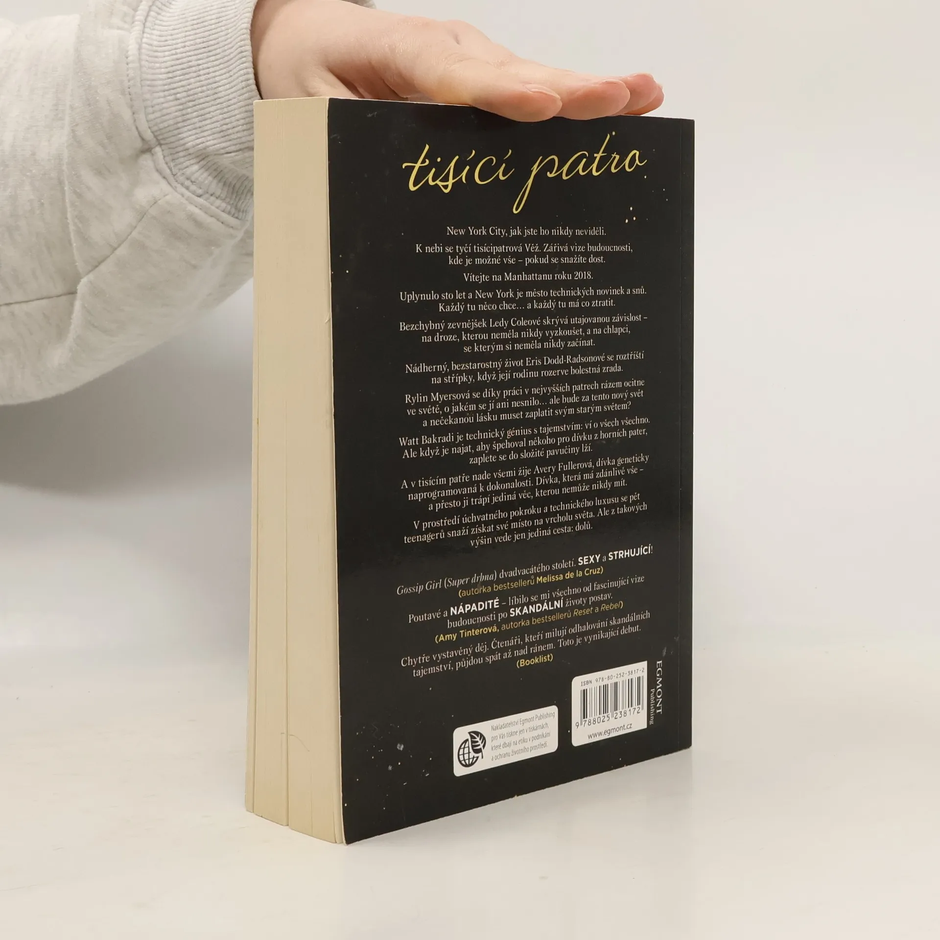 New York City, jak jste ho nikdy neviděli. K nebi se tyčí tisícipatrová Věž. Zářivá vize budoucnosti, kde je možné vše – pokud se snažíte dost. Vítejte na Manhattanu roku 2118. Uplynulo sto let a New York je město technických novinek a snů. Každý tu něco chce… a každý tu má co ztratit. Bezchybný zevnějšek Ledy Coleové skrývá utajovanou závislost – na droze, kterou neměla nikdy vyzkoušet, a na chlapci, se kterým si neměla nikdy začínat. Nádherný, bezstarostný život Eris Dodd-Radsonové se roztříští na střípky, když její rodinu rozerve bolestná zrada. Rylin Myersová se díky práci v nejvyšších patrech rázem ocitne ve světě, o jakém se jí ani nesnilo… ale bude za tento nový svět a nečekanou lásku muset zaplatit svým starým světem? Watt Bakradi je technický génius s tajemstvím: ví o všech všechno. Ale když je najat, aby špehoval dívku z horních pater, zaplete se do složité pavučiny lží. A v tisícím patře nade všemi žije Avery Fullerová, dívka geneticky naprogramovaná k dokonalosti. Dívka, která má zdánlivě vše – a přesto ji trápí jediná věc, kterou nemůže nikdy mít. V prostředí úchvatného pokroku a technického luxusu se pět teenagerů snaží získat své místo na vrcholu světa. Ale z takových výšin vede jen jediná cesta: dolů.