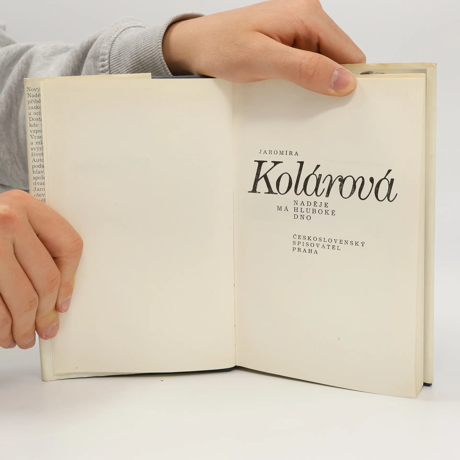 Nový román zasloužilé umělkyně Jaromíry Kolárové Naděje má hluboké dno je životním příběhem prosté ženy, která je náhle zaskočena vážnou nemocí a ocitá se tváří v tvář nebezpečí života. Dostává se tak do nemocnice, kde má dost času probírat se vzpomínkami a přemýšlet o životě. Vrací se zpět do doby svého dětství a mládí, dává nahlédnout do osudů svých nejbližších, stejně tak jako do životního údělu svých spolupacientek. Autorce se v tomto románu podařilo podat nejen přesvědčivý příběh hlavní hrdinky, ale i promítnout společenskou situaci od počátku dvacátých let až po současnost. Jaromíra Kolárová podmaňuje svou otevřeností, nepatetičností, životním nadhledem, jež vyzařují z celého románu, který má všechny předpoklady, aby si získal široký čtenářský ohlas jako autorčina předchozí díla.