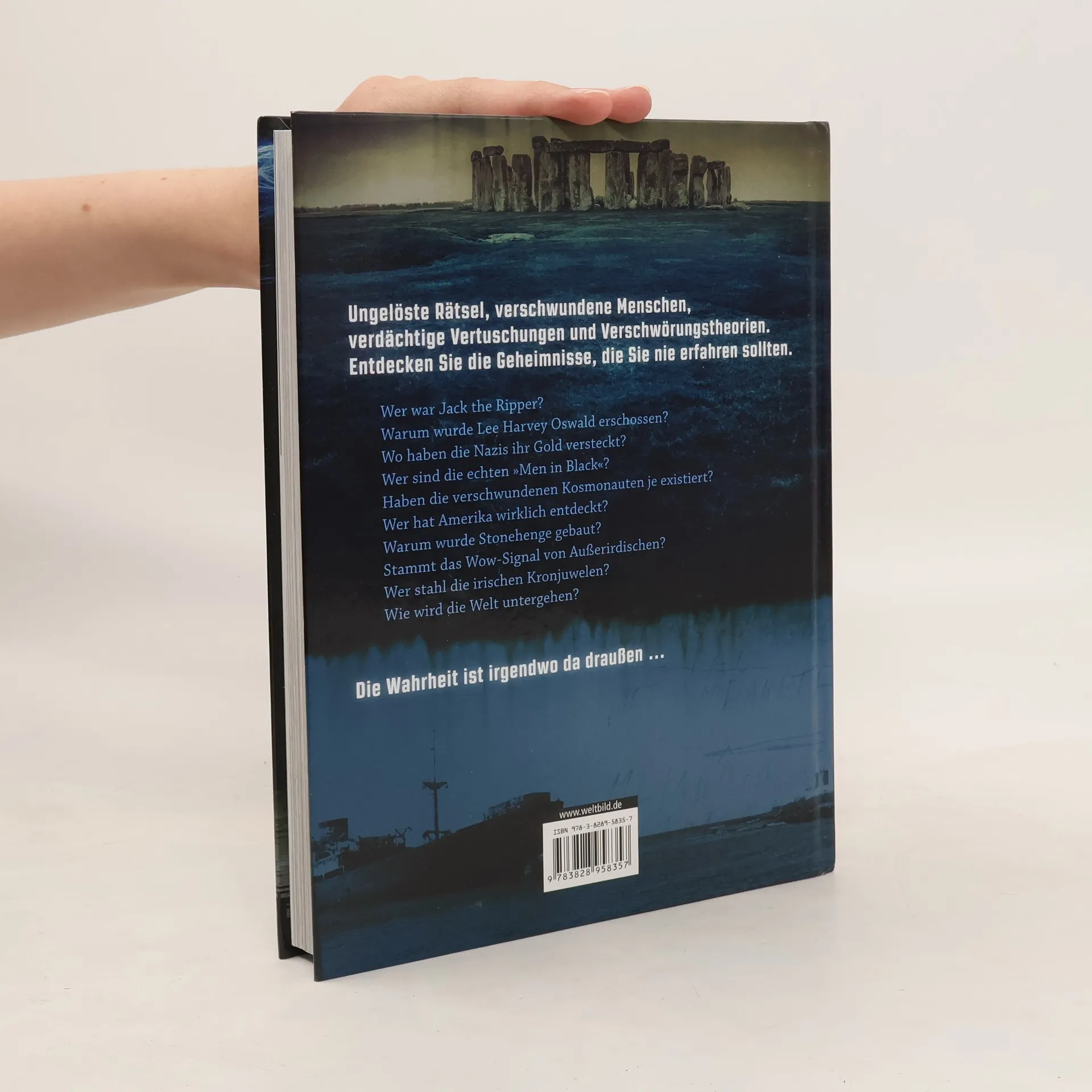 Wer war Jack the Ripper? Und wozu wurde der Steinkreis von Stonehenge wirklich errichtet? Warum wurde Lee Harvey Oswald erschossen? Und wo haben die Nazis ihr Gold versteckt? Nur vier der 100 faszinierendsten Rätsel der Welt, die Autor Daniel Smith gründlich unter die Lupe nimmt ... Verschwörungen und Verschwörungstheorien Vom Kennedy-Attentat bis zu den Anschlägen von 9/11 - nicht nur in den einschlägigen TV-Doku-Sendern haben Verschwörungstheorien Hochkonjunktur. Trotz aller Forschung, Wissenschaft und Technik gibt es kaum ein spektakuläres Ereignis der Weltgeschichte, das nicht von offenen Fragen begleitet wird. Was ist die Wahrheit? Was war die Ursache für das katastrophale Tunguska-Ereignis, bei dem 1908 über 2.000 Quadratkilometer Wald binnen Sekunden zerstört wurden? Gibt es die "Men in Black" wirklich - und für wen arbeiten sie? Wer schuf die gigantischen Steinköpfe auf der abgelegenen Osterinsel? ... Was lange Jahrzehnte als wissenschaftlich gesicherte Erkenntnis oder Erklärung gilt, wird oft über Nacht durch neue Indizien zu Fall gebracht! Folgen Sie dem Autor dieser Bild-/Text-Dokumentation auf den Spuren neuer, fesselnder Theorien zu Ereignissen, die die Menschen bis heute beschäftigen ... Wurde Amerika schon Jahrhunderte vor Kolumbus entdeckt? Was geschah mit den verschwundenen Kosmonauten? Stammt das "Wow-Signal" wahrscheinlich doch von einer außerirdischen Zivilisation?