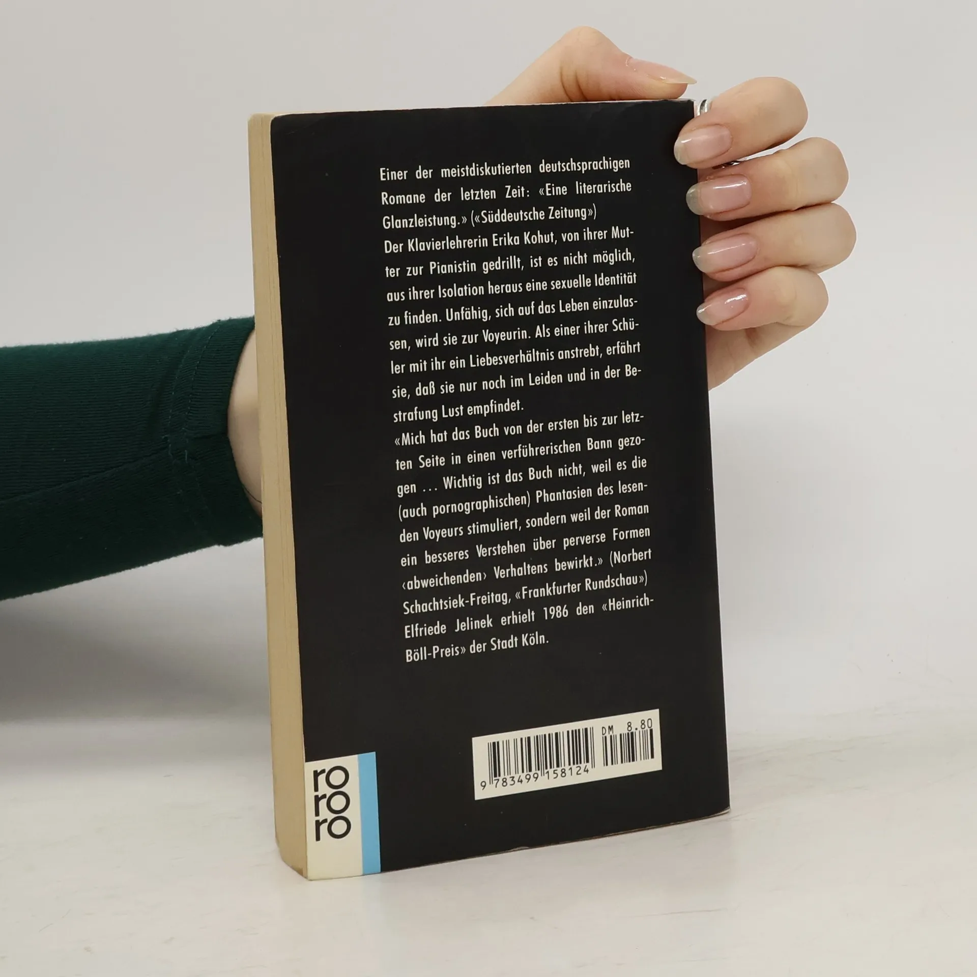 «Eine literarische Glanzleistung.» (Süddeutsche Zeitung)Von ihrer Mutter wurde sie unerbittlich zur Pianistin gedrillt. Und nun findet die Klavierlehrerin Erika Kohut nicht mehr aus der Isolation heraus. Unfähig, sich auf das Leben einzulassen, wird sie zur Voyeurin. Als einer ihrer Schüler ein Liebesverhältnis mit ihr anstrebt, erkennt sie, dass sie nur noch im Leiden und in der Bestrafung Lust empfindet.«Die Klavierspielerin» brachte Elfriede Jelinek den endgültigen Durchbruch. Michael Hanekes Verfilmung triumphierte auf dem Filmfestival 2001 in Cannes: Grand Prix der Jury und Darstellerpreise für Isabelle Huppert und Benoît Magimel. Die Autorin wurde für ihr Werk im Jahr 2004 mit dem Nobelpreis für Literatur ausgezeichnet.