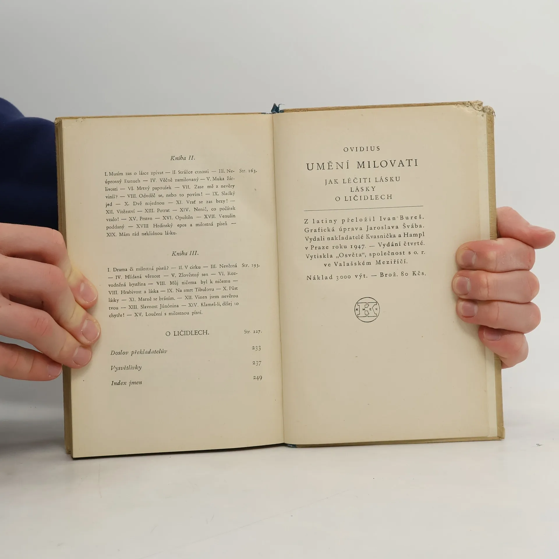 Umění milovati, Jak léčiti lásku, Lásky, O ličidlech Milostná díla, která přetrvala věky a dnes po dvou tisíciletích, stále ještě patří k nejpůvabnějším a nejrozkošnějším veršům, jaké kdy byly o lásce a milování napsány.