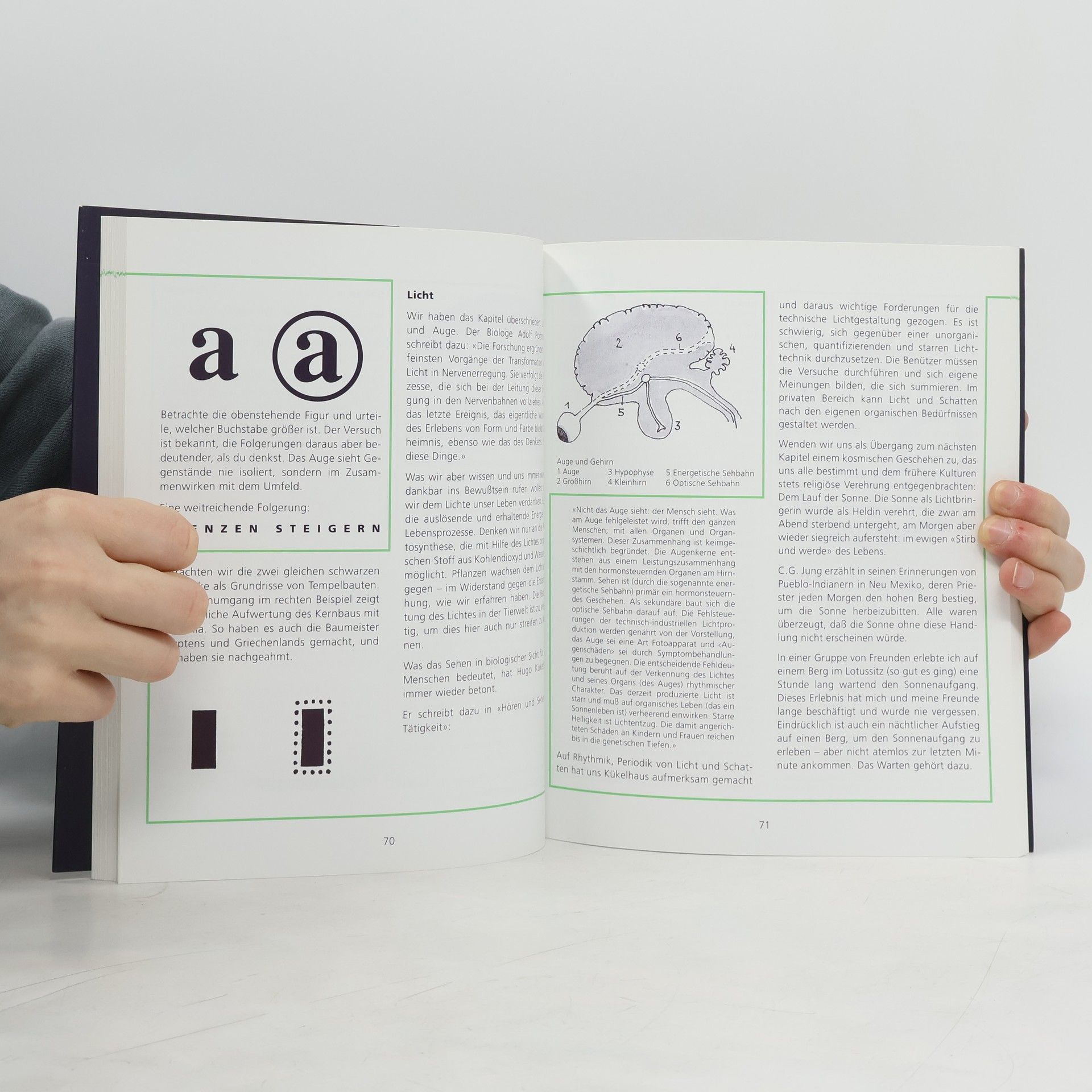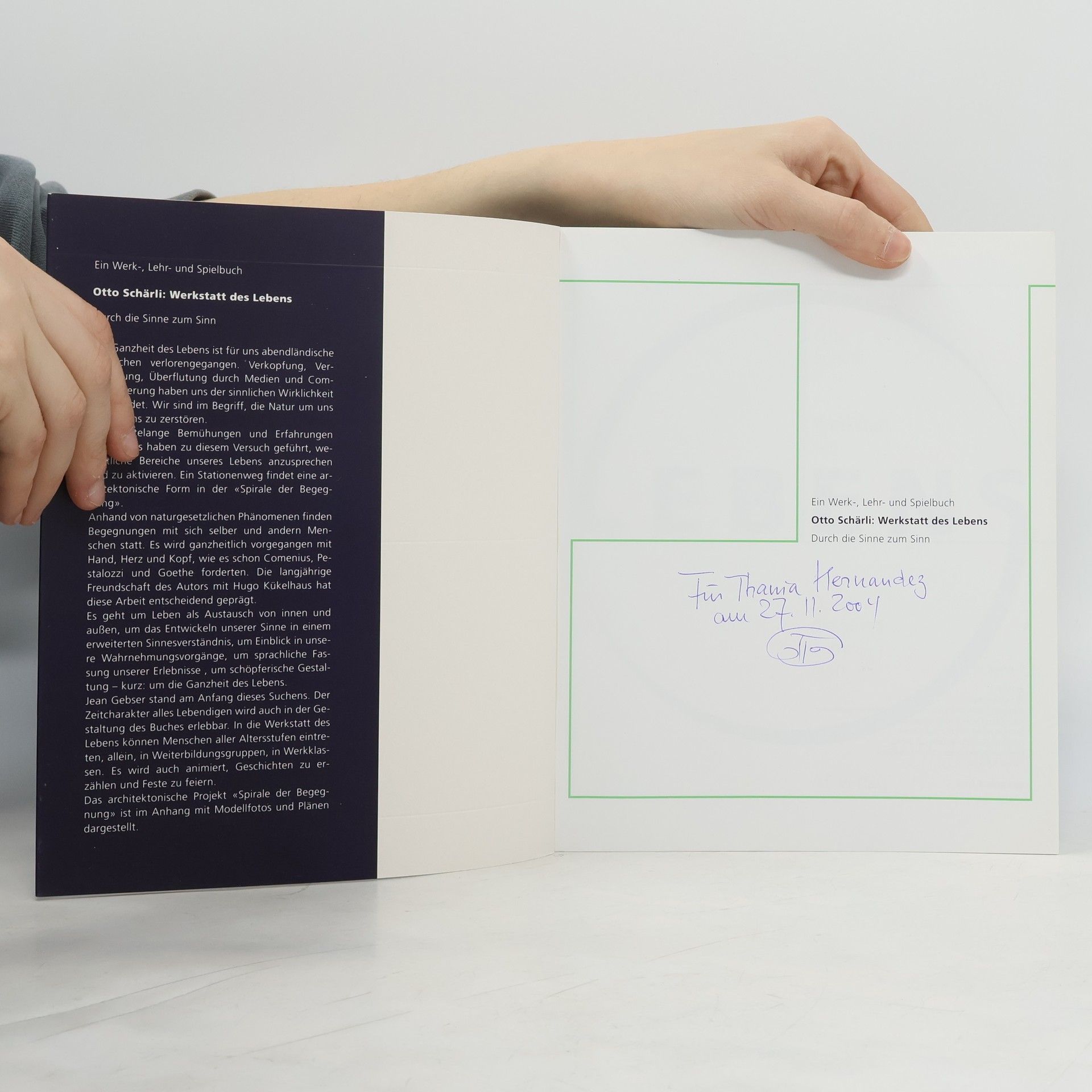 Die Ganzheit des Lebens ist für uns abendländische Menschen verloren gegangen. Verkopfung, Verzweckung und die Überflutung durch Medien haben uns von der sinnlichen Wirklichkeit entfremdet und gefährden die Natur um uns und in uns. Der Autor hat jahrzehntelange Erfahrungen genutzt, um wesentliche Bereiche unseres Lebens anzusprechen und zu aktivieren. Ein Stationenweg findet architektonisch in der »Spirale der Begegnung« Gestalt. Durch naturgesetzliche Phänomene entstehen Begegnungen mit uns selbst und anderen. Es wird ganzheitlich mit Hand, Herz und Kopf gearbeitet, wie es bereits Comenius, Pestalozzi und Goethe forderten. Die langjährige Freundschaft des Autors mit Hugo Kükelhaus hat diese Arbeit entscheidend geprägt. Es geht um den Austausch zwischen Innen und Außen, die Entwicklung unserer Sinne, Einblicke in unsere Wahrnehmung und die sprachliche Fassung unserer Erlebnisse. Zudem wird schöpferische Gestaltung angeregt – kurz: die Ganzheit des Lebens. Jean Gebser war der Ausgangspunkt dieses Suchens. Der Zeitcharakter des Lebens wird auch in der Gestaltung des Buches erlebbar. Menschen aller Altersstufen können in die Werkstatt des Lebens eintreten, sei es allein, in Weiterbildungsgruppen oder Werkklassen. Geschichten erzählen und Feste feiern werden ebenfalls angeregt. Im Anhang sind das architektonische Projekt »Spirale der Begegnung« sowie Modellfotos und Pläne dargestellt.