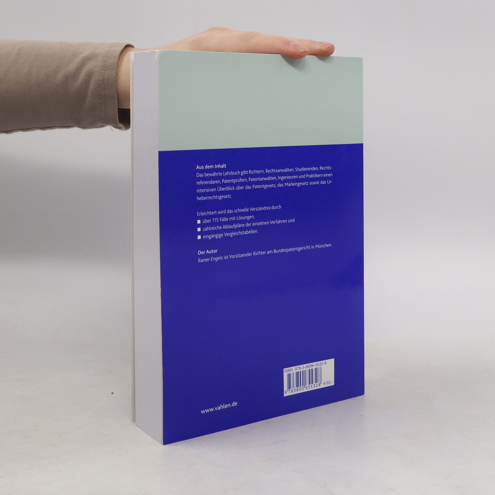 Das Lehrbuch bietet einen umfassenden Überblick über Patent-, Marken- und Urheberrecht für Juristen und Praktiker. Über 120 Fälle mit Lösungen, Ablaufpläne und Vergleichstabellen erleichtern das Verständnis. Autor Rainer Engels ist Vorsitzender Richter am Bundespatentgericht in München a.D.