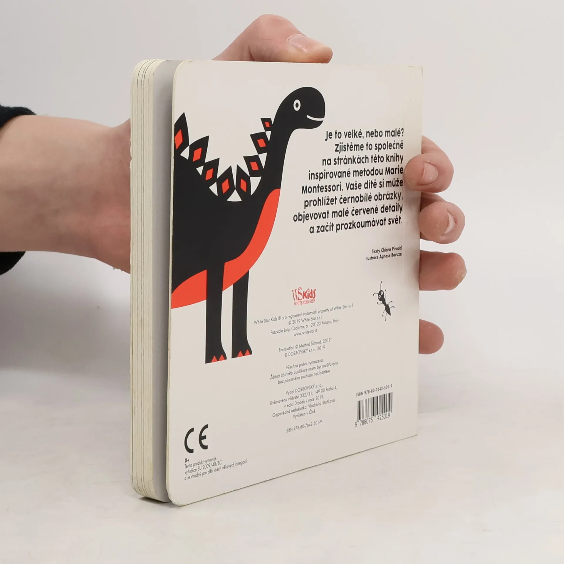 Je to velké, nebo malé? Zjistěme to společně na stránkách této knihy inspirované metodou Marie Montessori. Vaše dítě si může prohlížet černobílé obrázky, objevovat malé červené detaily a začít prozkoumávat svět. Vhodné pro děti ve věku 0 až 12 měsíců.