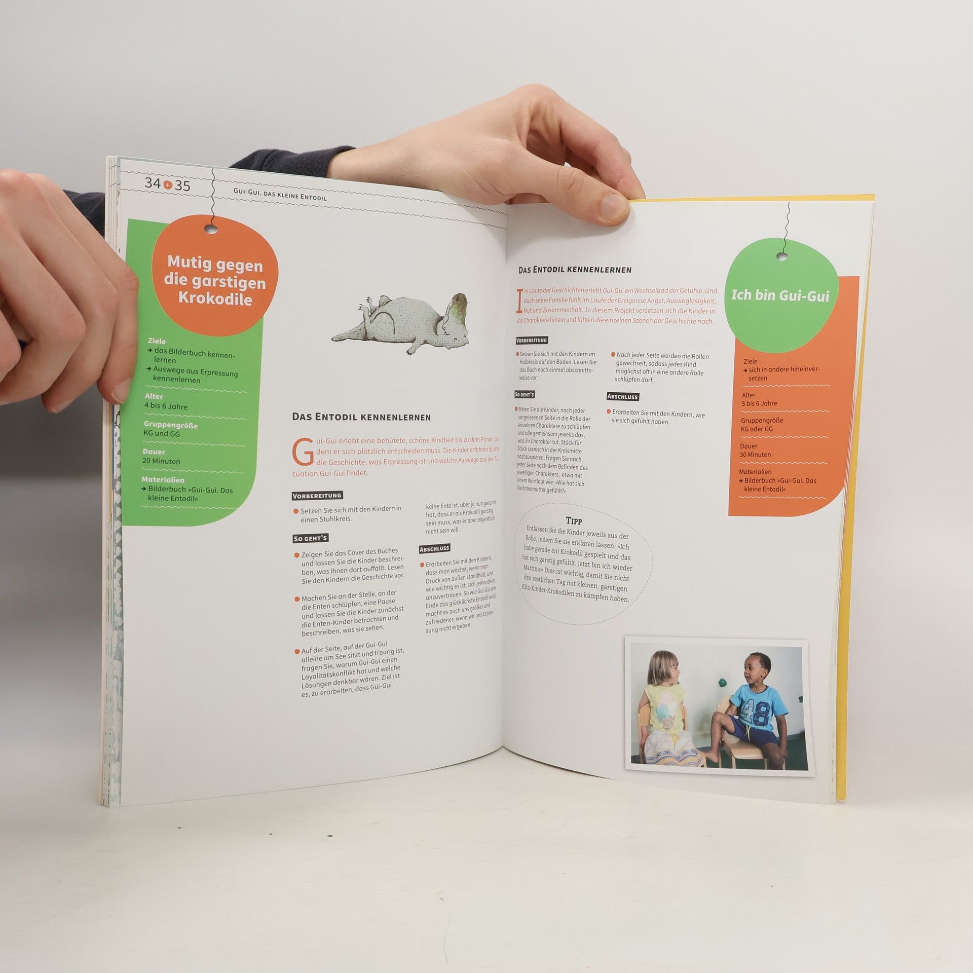Kinder geraten – freiwillig oder ungewollt – in Situationen, die sie herausfordern. Am Klettergerüst testen sie ihre Komforthöhe aus oder erleben Momente, in denen sie anderen signalisieren sollten, dass ihre persönliche Grenze erreicht ist. Momente dieser Art erfordern Mut. Dieser kann gestärkt werden durch die Förderung von Selbstkompetenz und das Erleben von Selbstwirksamkeit. Dafür eignen sich mutige Bilderbuchhelden. Mit den 40 Ideen und Impulsen dieses Projekthefts können Kinder sich selbst besser kennenlernen, Vertrauen und Zuversicht in sich und die Welt entwickeln sowie eigene Gefühle wahrnehmen und ausdrücken. Sie bauen dadurch ein positives Selbstbild auf und sind für zukünftige Grenzsituationen gestärkt. Das Projektheft nimmt Bezug auf folgende Bilderbücher: »Gui-Gui – das kleine Entodil«, Chih-Yuan Chen (Beltz & Gelberg), »Peter und der Wolf«, Sergej Prokofjew (Beltz & Gelberg); »Schaf Ahoi«, Philip Waechter/Dorothee Haentjes (Beltz & Gelberg); »Heute bin ich«, Mies van Hout (aracari verlag); »Das große und das kleine Nein!«, Gisela Braun/Dorothee Wolters (Verlag an der Ruhr).